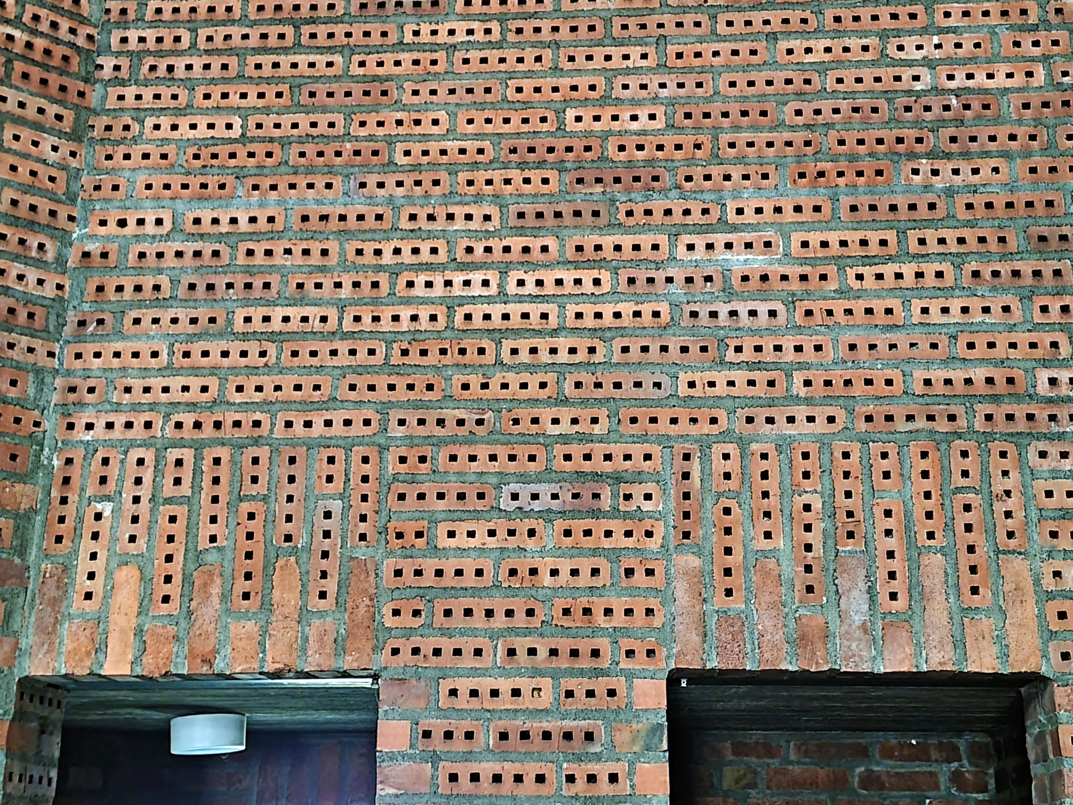 Bild oben: die Ziegel sind mit der Lochung nach innen verbaut.