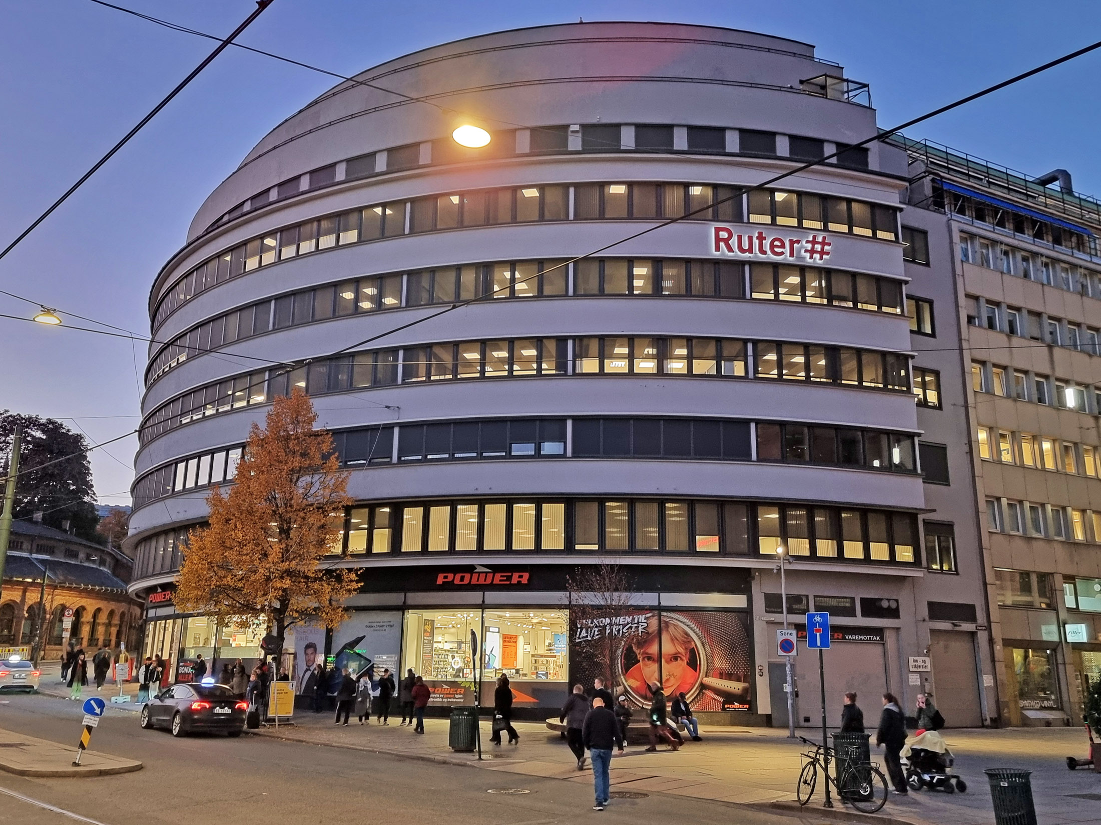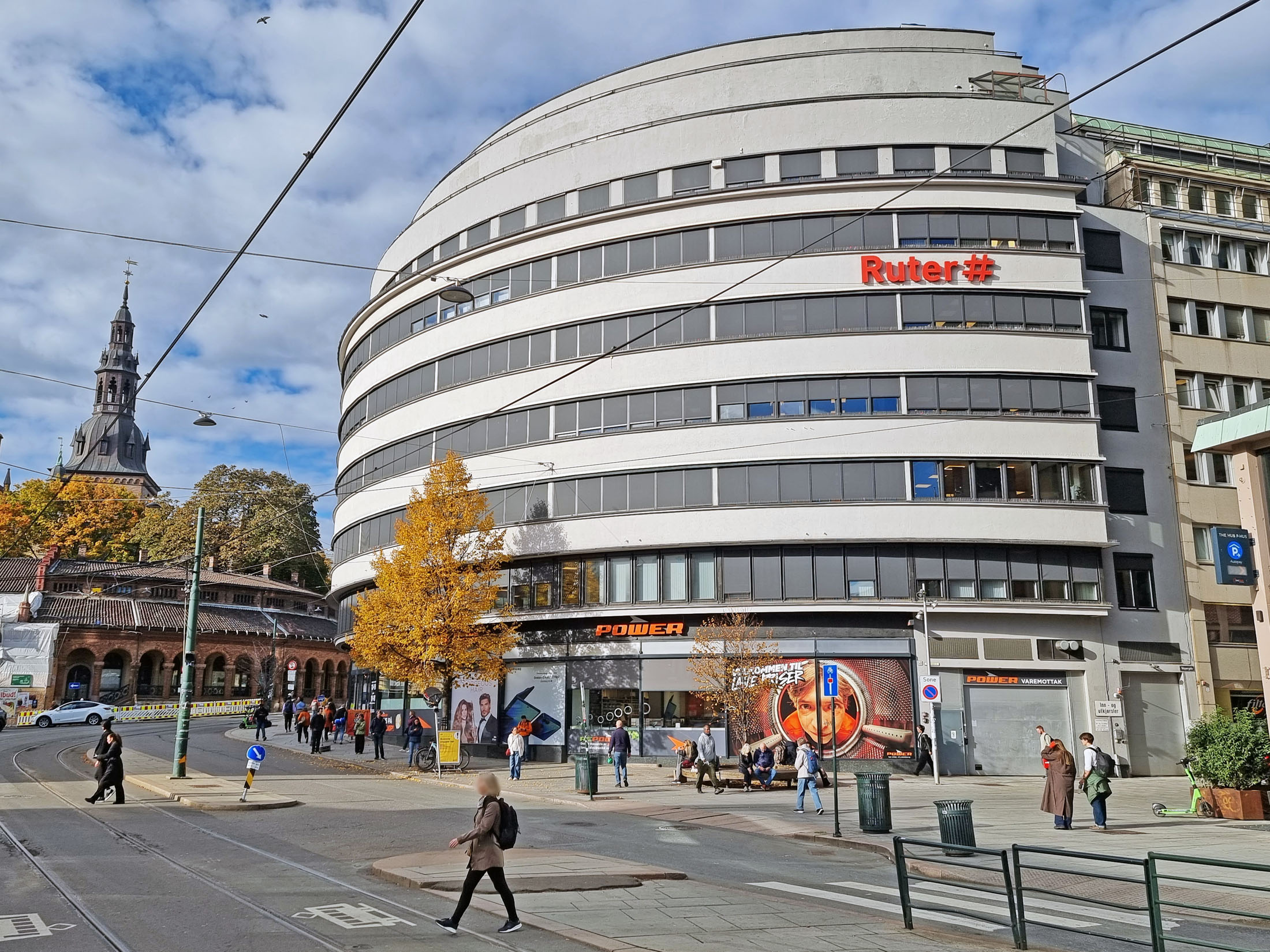 Bilder oben: das von Erich Mendelsohn für die Gebrüder Dobloug entworfene Gebäude befindet sich schräg gegenüber dem Osloer Hauptbahnhof und beherbergt heute u.a. das Nahverkehrsunternehmen Ruter.