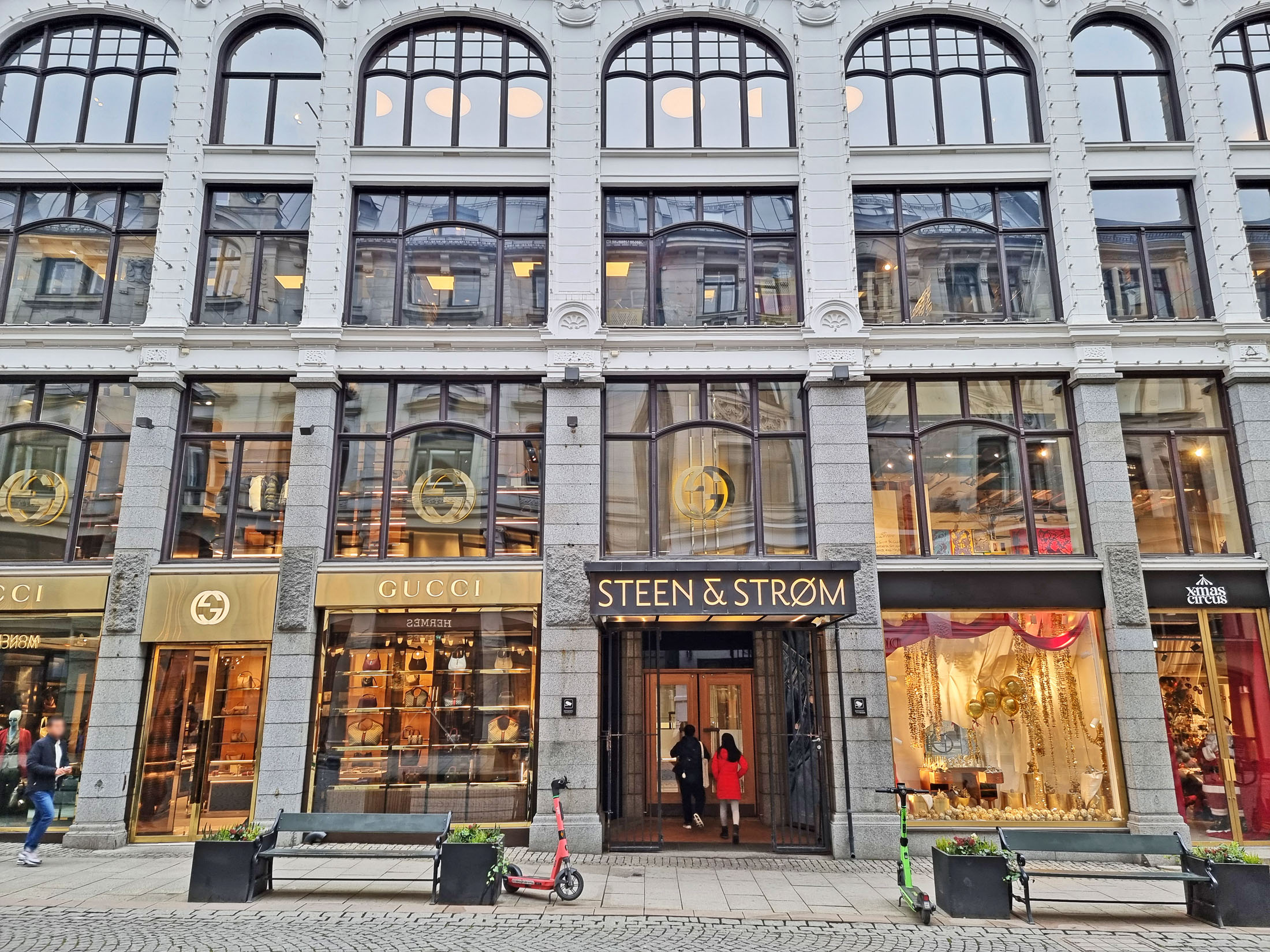 Bilder oben: das Gebäude des Steen & Strøm Magasin (Kaufhaus Steen & Strøm) in der heutigen Form stammt aus dem Jahr 1930.