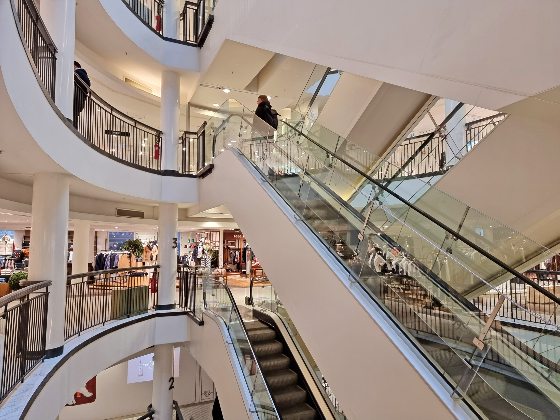 Bild oben: Rolltreppenanlage im Gebäudeinneren.