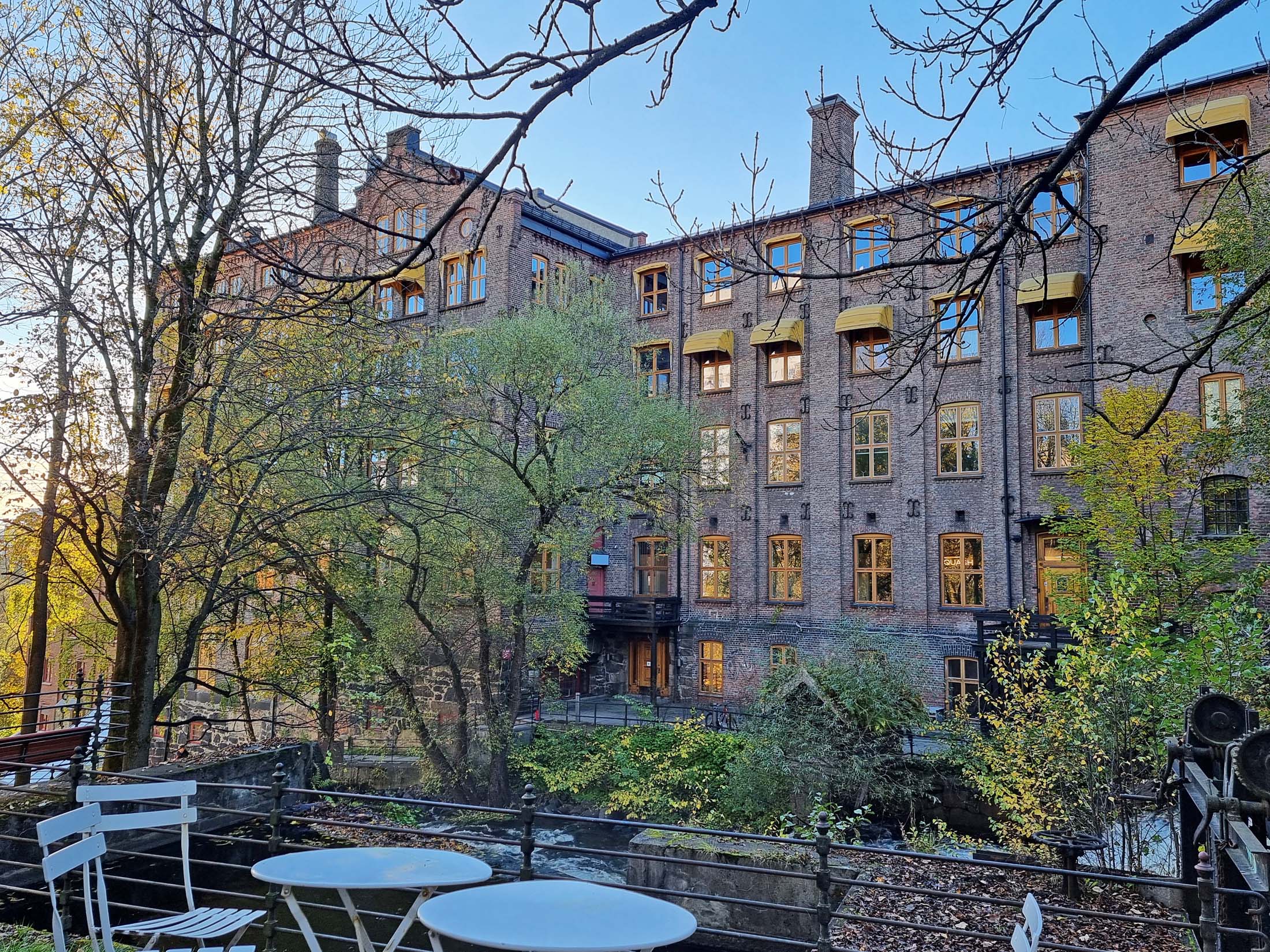 Heute haben die alten Industriegebäude zumeist eine andere Nutzung: hier ist die Kreativszene eingezogen, es gibt eine Kunsthochschule, Filmstudios und Designbüros und viel (alternative) Gastronomie, so etwa Café und Bar Blå, Anlaufstelle für musik-, kunst- und literaturinteressierte Osloer/innen. Im Sommer kann man auf der Außenterrasse auch draußen sitzen, direkt am vorbeiplätschernden Flüsschen.