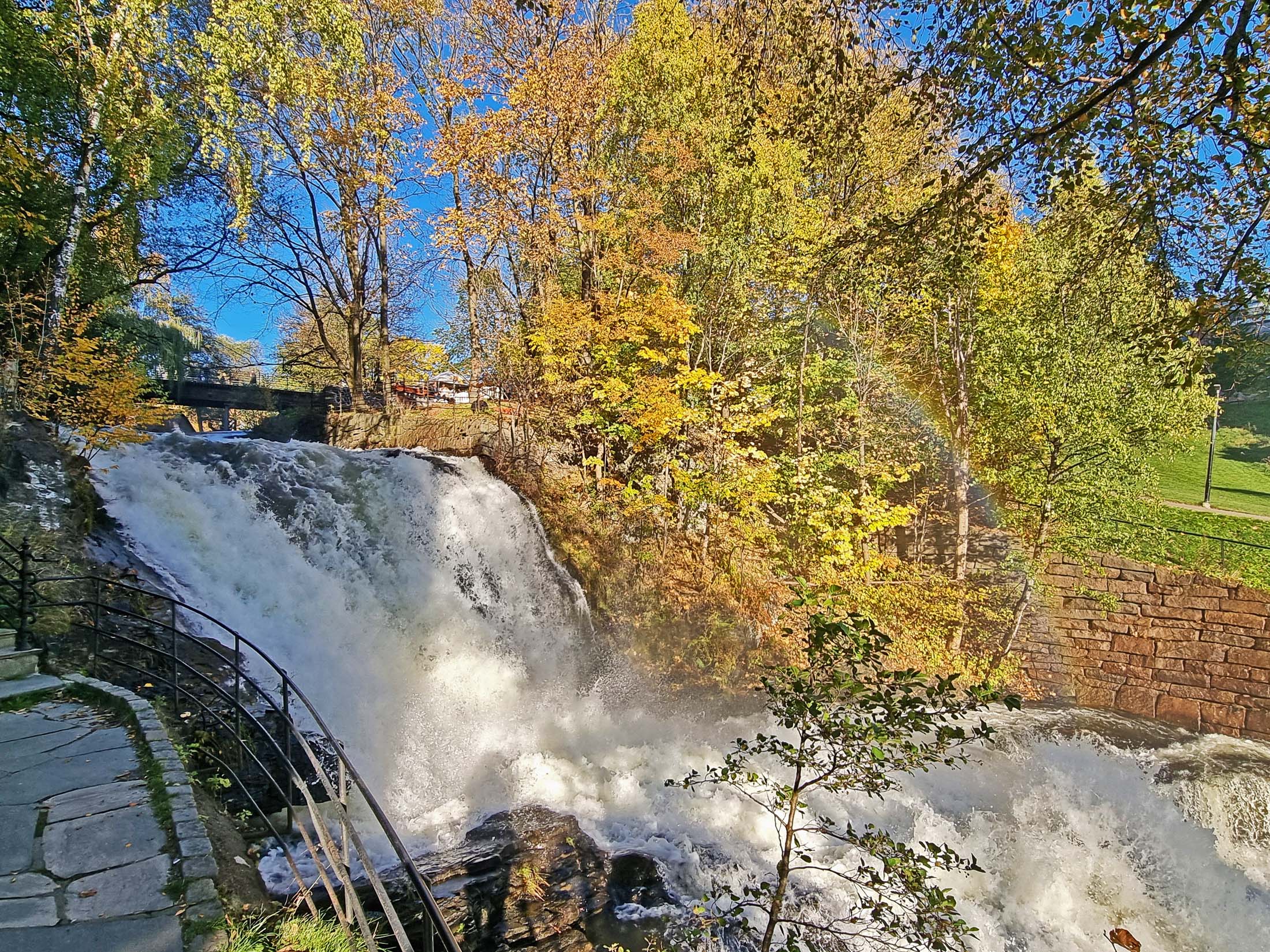 Bilder oben: wild-romantische Natur inmitten der Stadt: der Flusslauf der Akerselva ist vom See Maridalsvannet bis zur Mündung in den Oslofjord nur knappe 10 Kilometer lang, zeigt aber einen Höhenunterschied von 150 Metern. Über 20 Wasserfälle haben sich gebildet, einige auch auf dem Stadtgebiet. Recht spektakulär ist der Wasserfall Nedre Vøyen. Hier befindet sich auch Hønse-Lovisas hus mit Café und Museum.