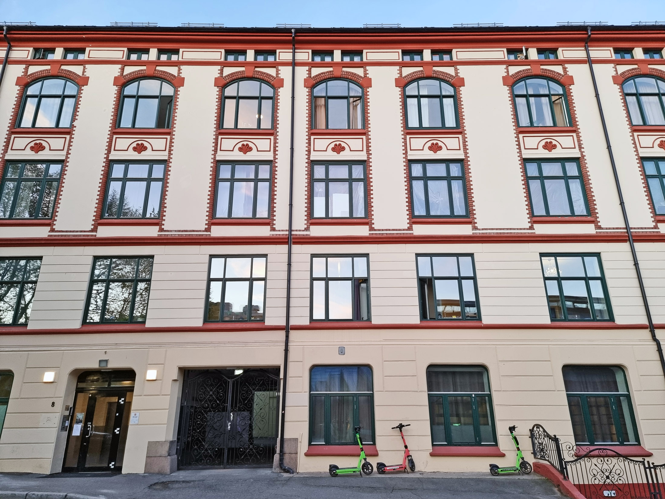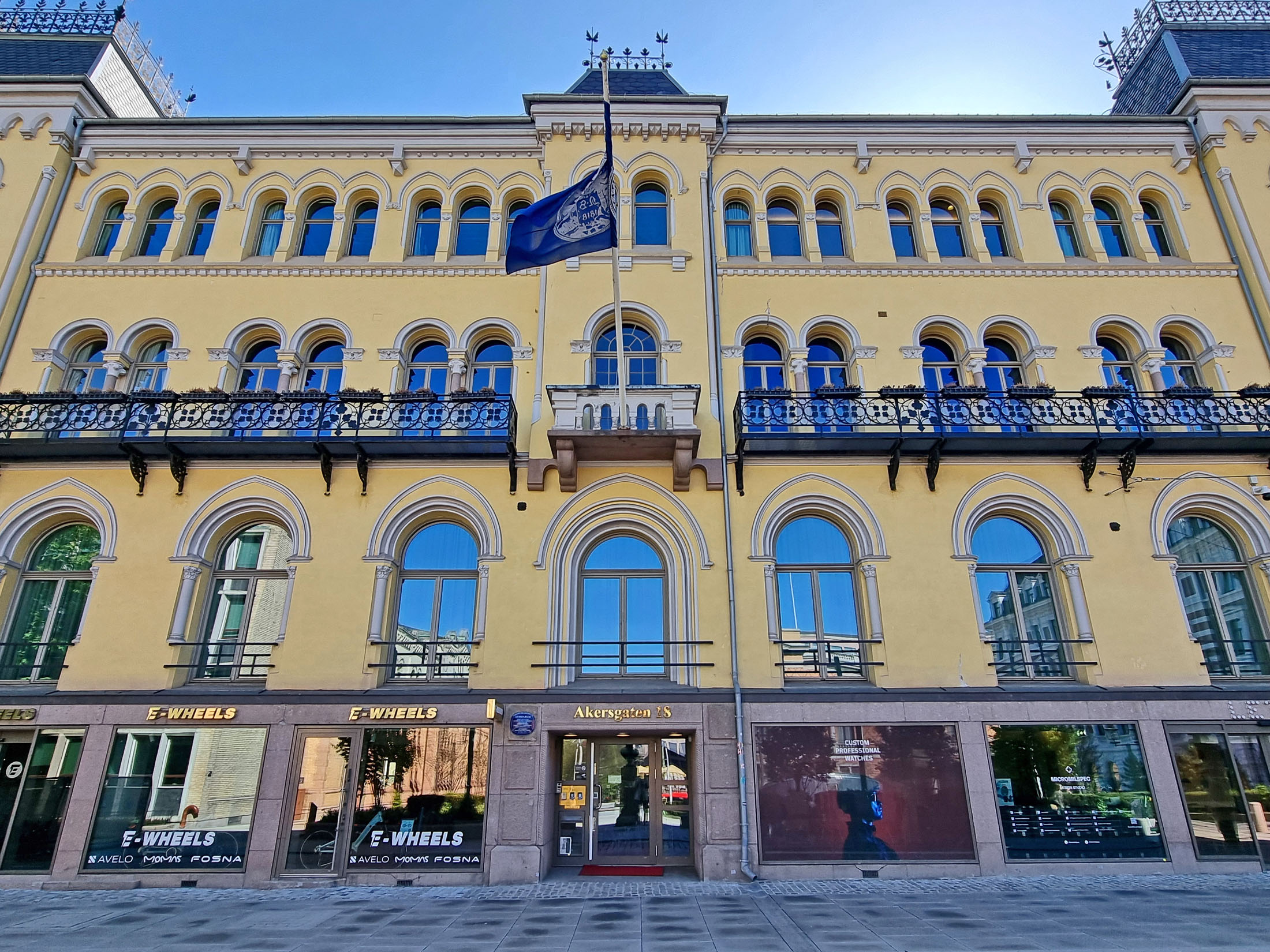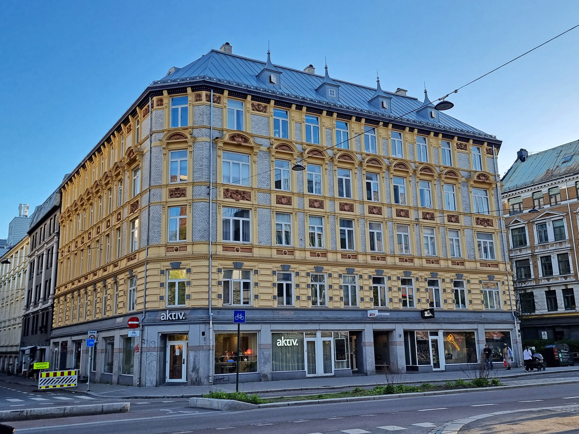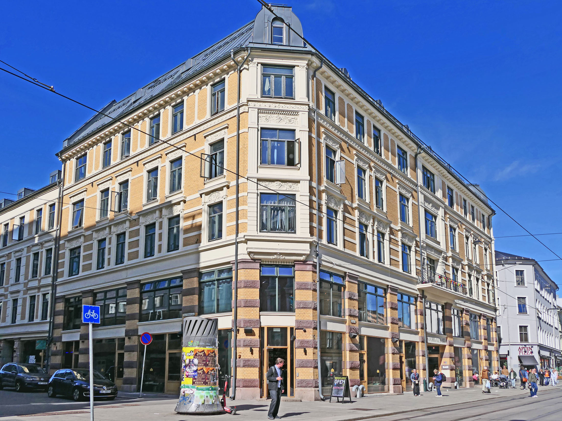 Bilder oben: dieses Gebäude befindet sich an der Akersgata in Nachbarschaft zum Horngården-Hochhaus.