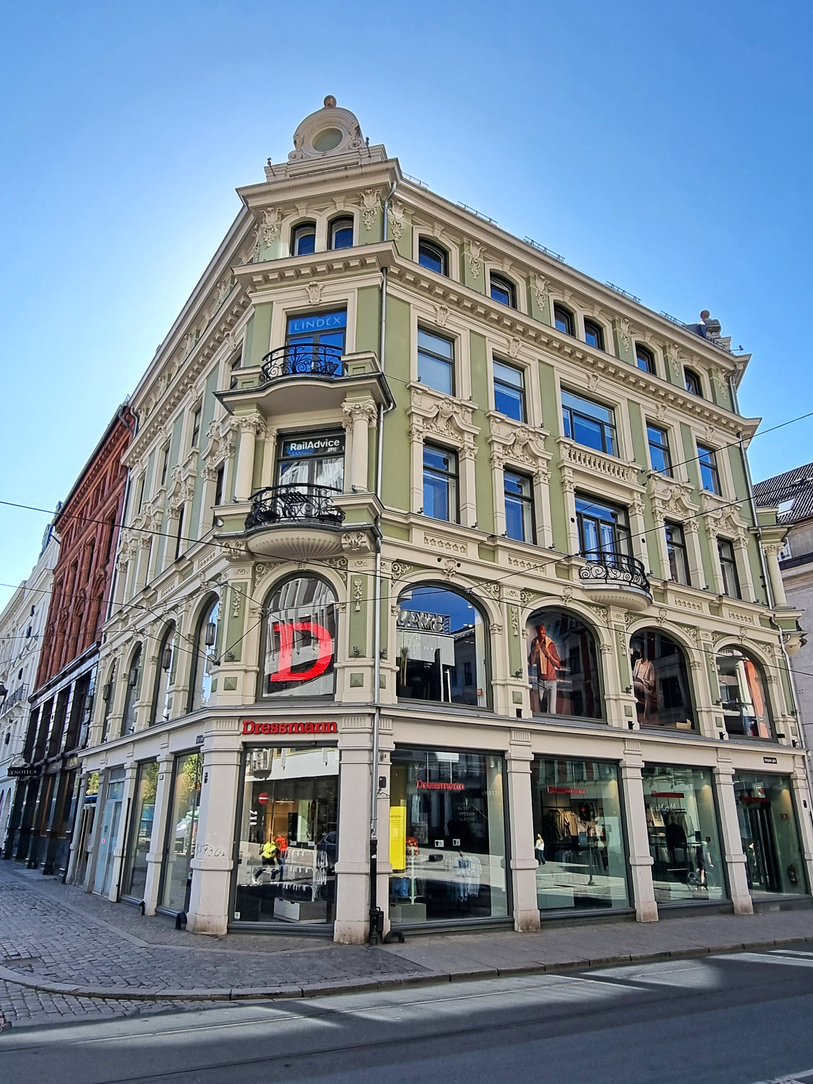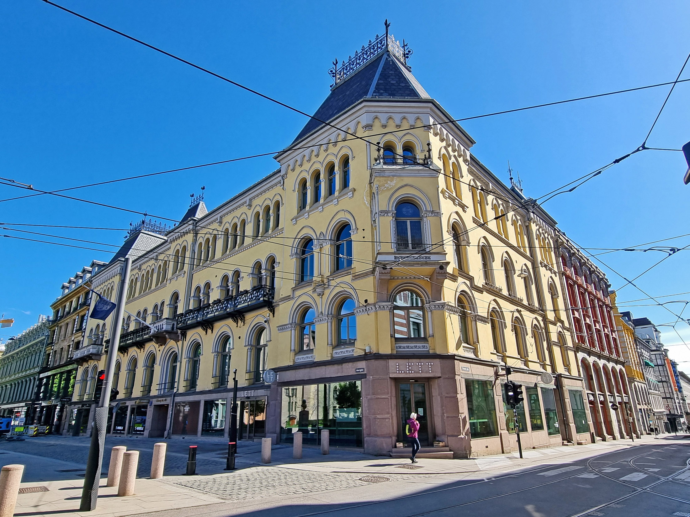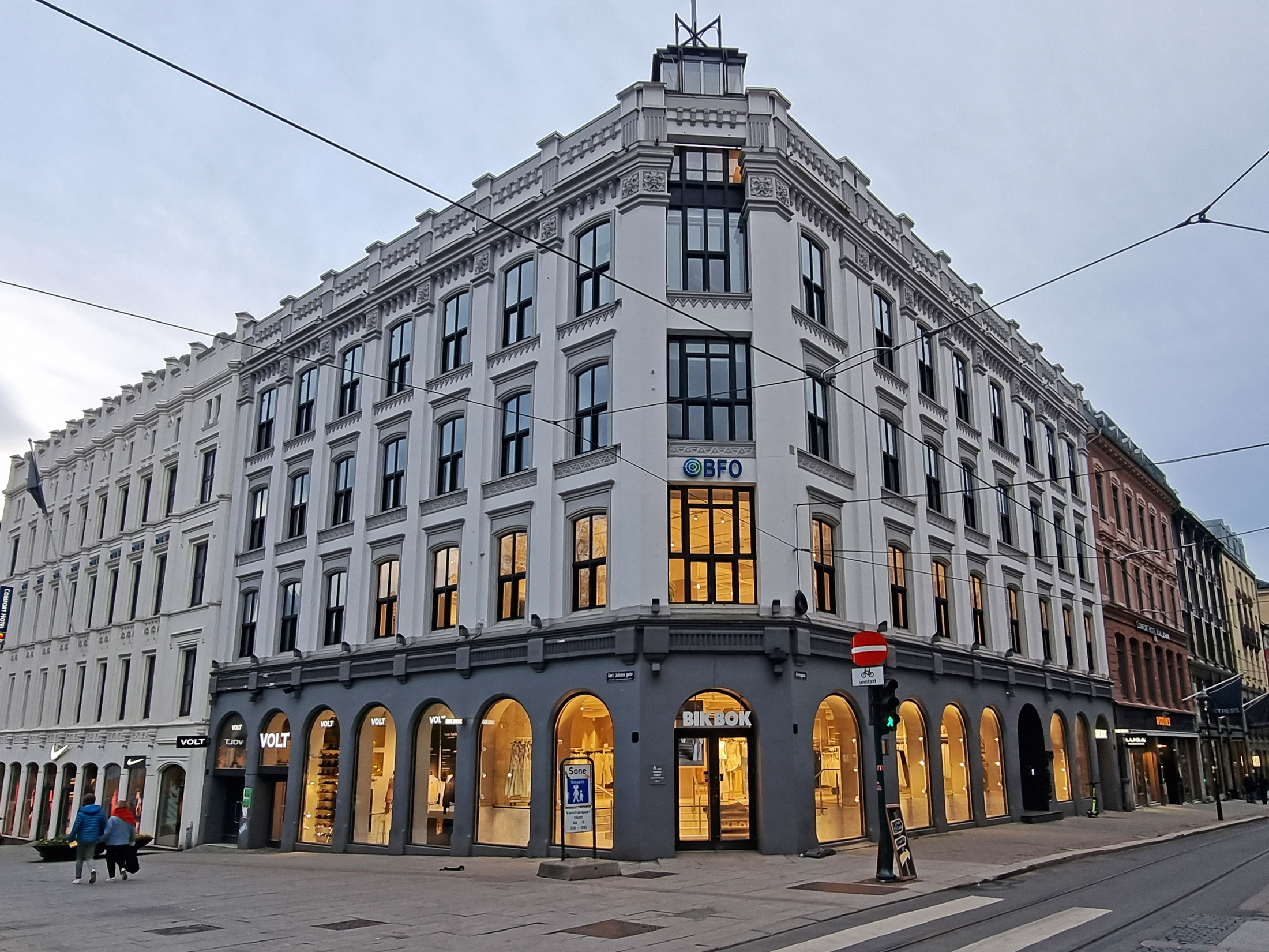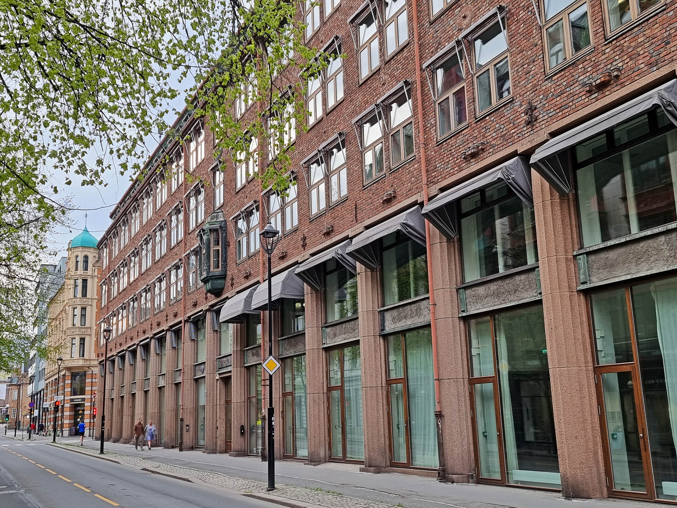 Bilder oben: neu renoviertes Büro- und Geschäftshaus an der Møllergata am Stortorvet (früher Sitz der Kreditkassen).