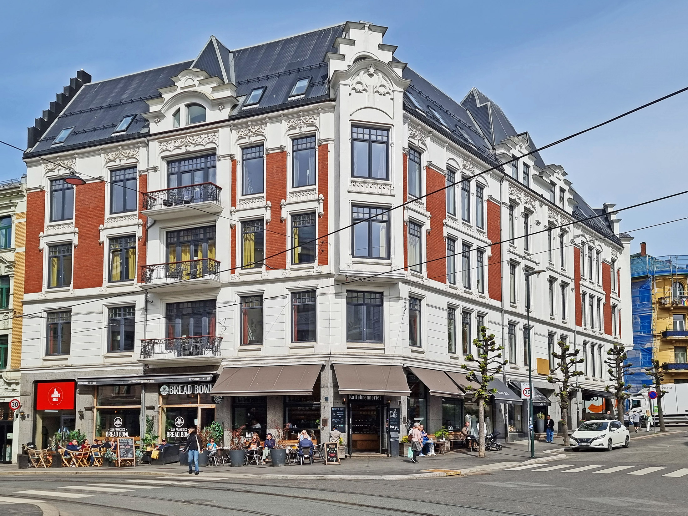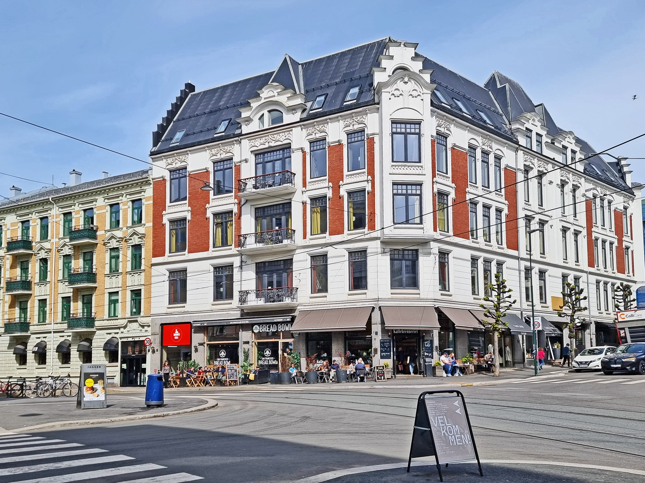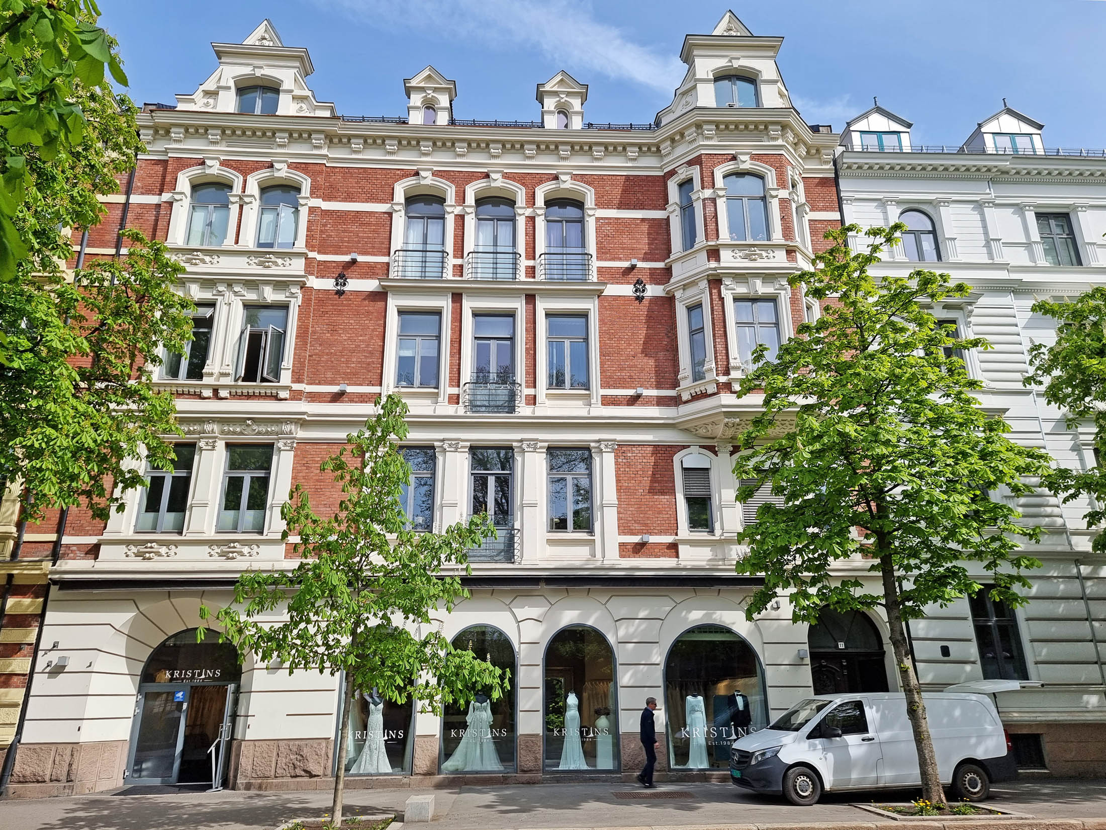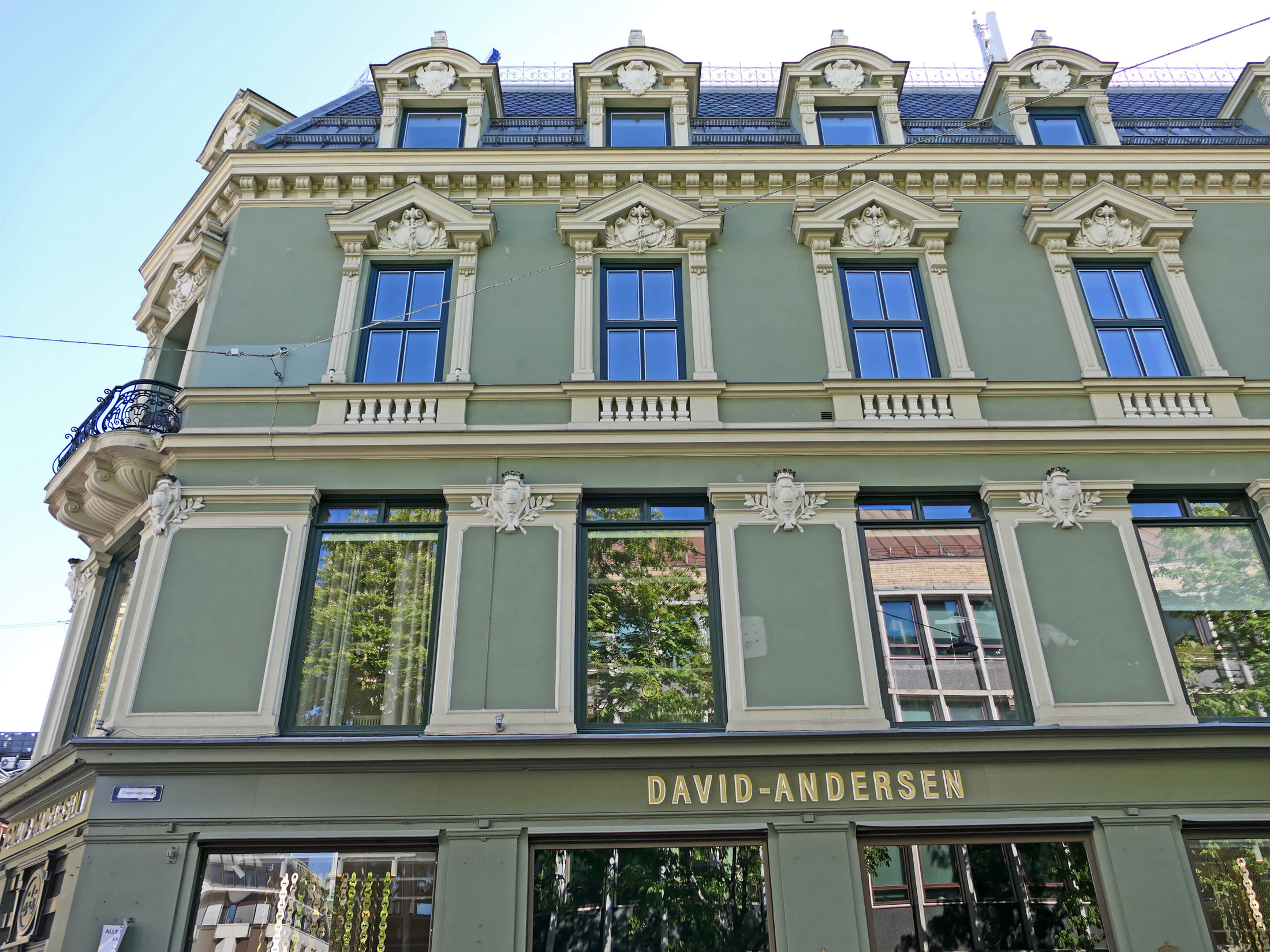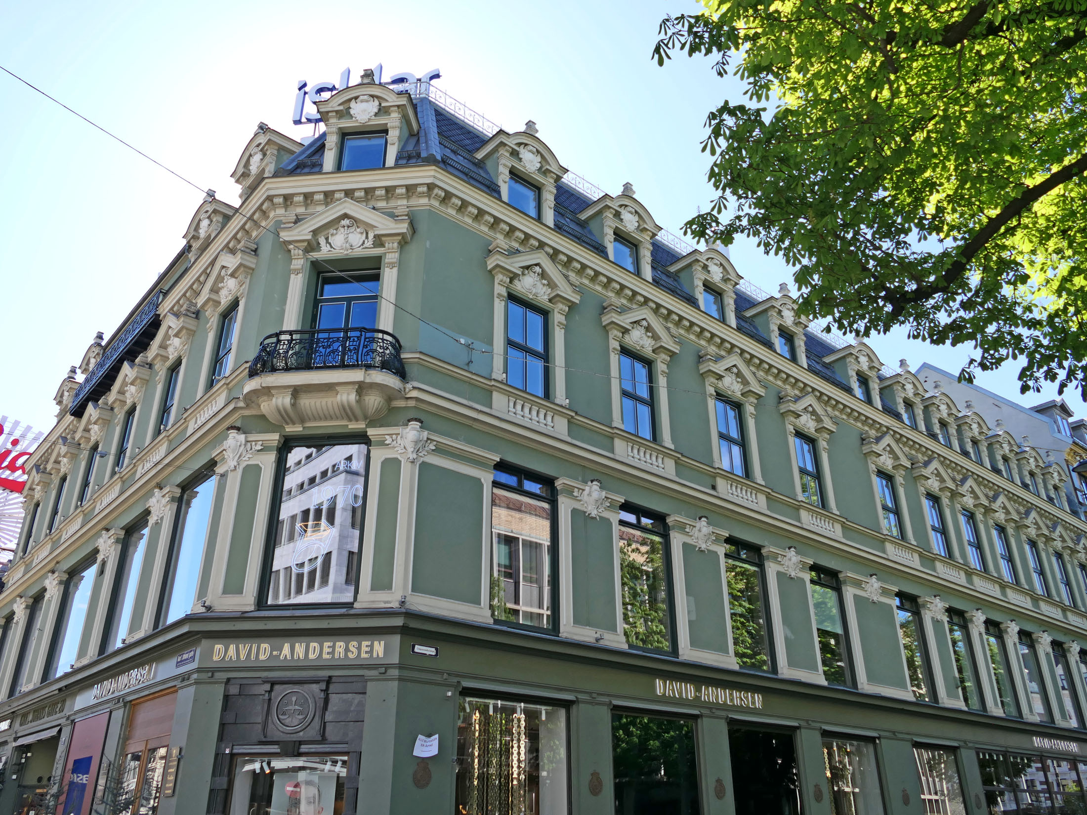 Bilder oben: neu renoviertes Büro- und Geschäftshaus an der Møllergata am Stortorvet (früher Sitz der Kreditkassen).