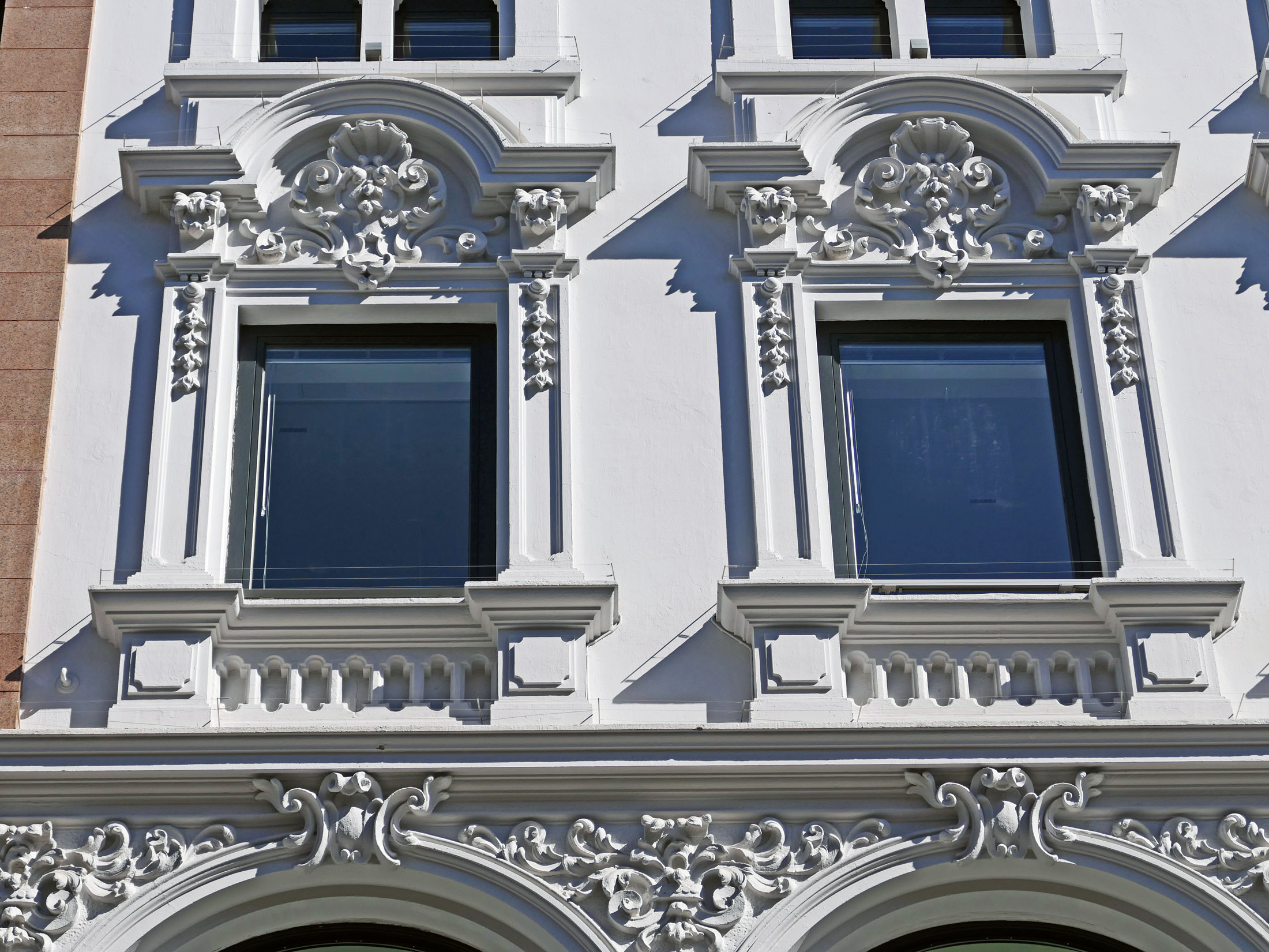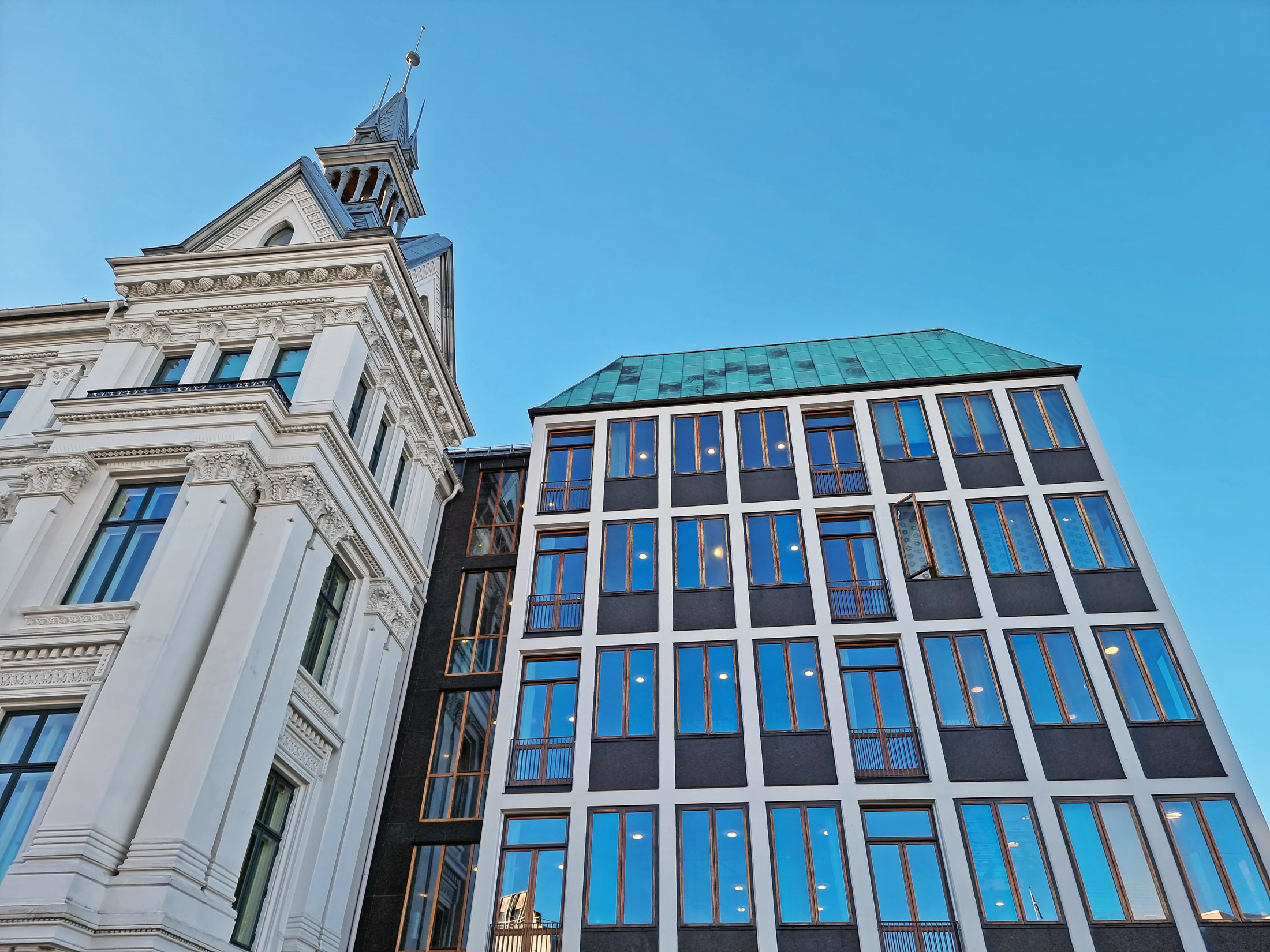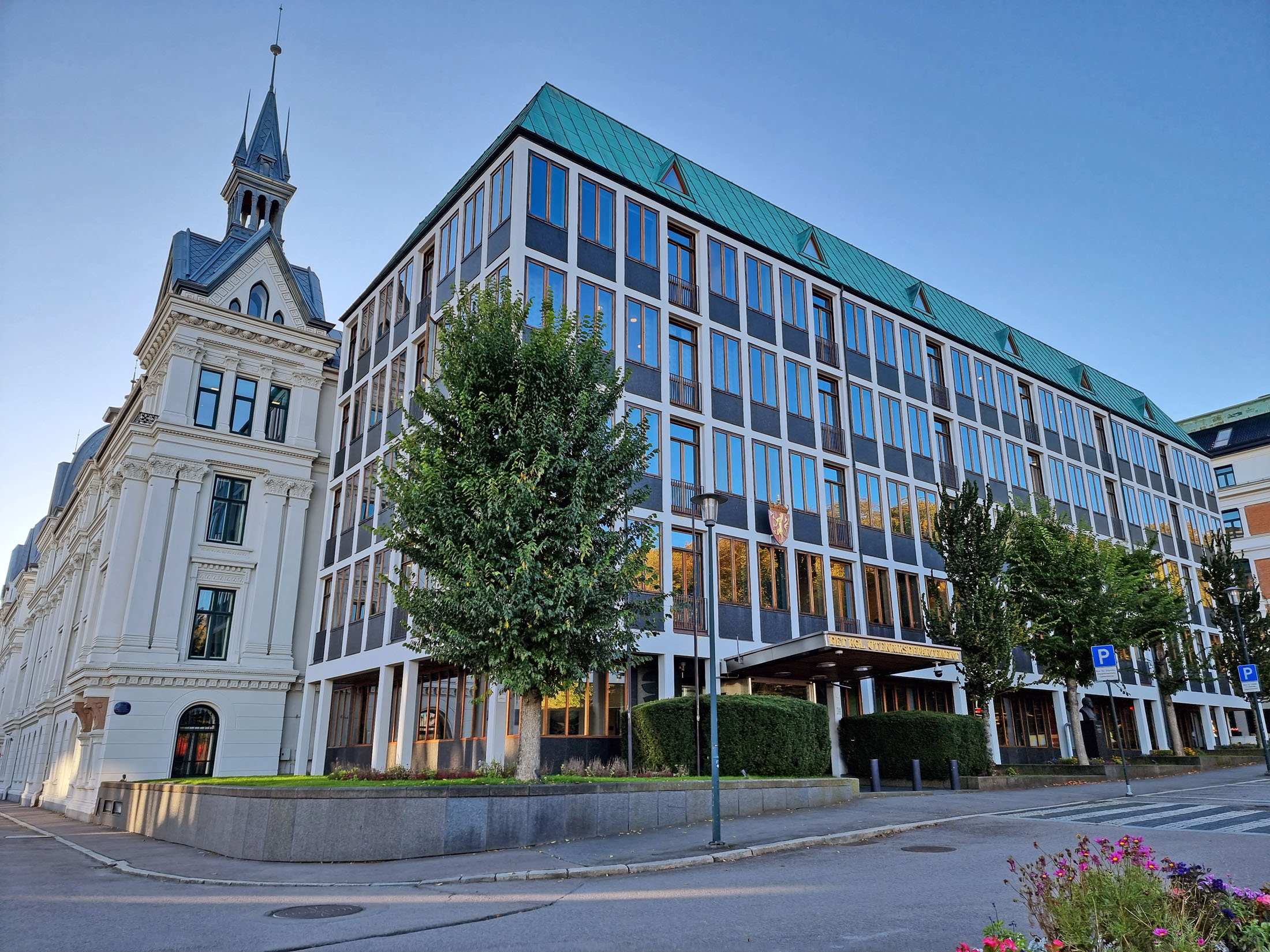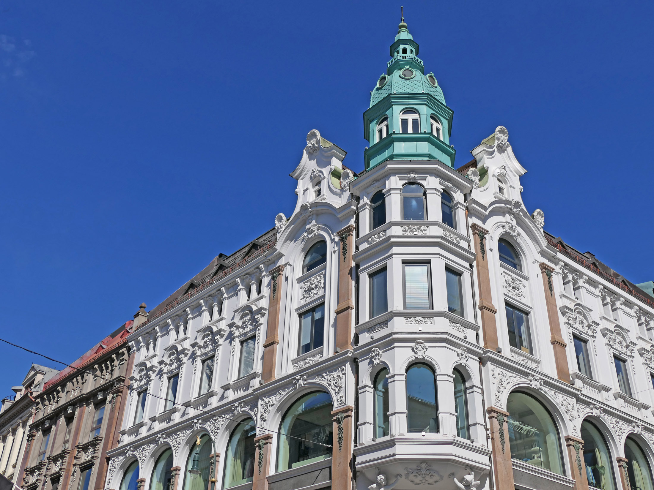 Bilder oben: neu renoviertes Büro- und Geschäftshaus an der Møllergata am Stortorvet (früher Sitz der Kreditkassen).