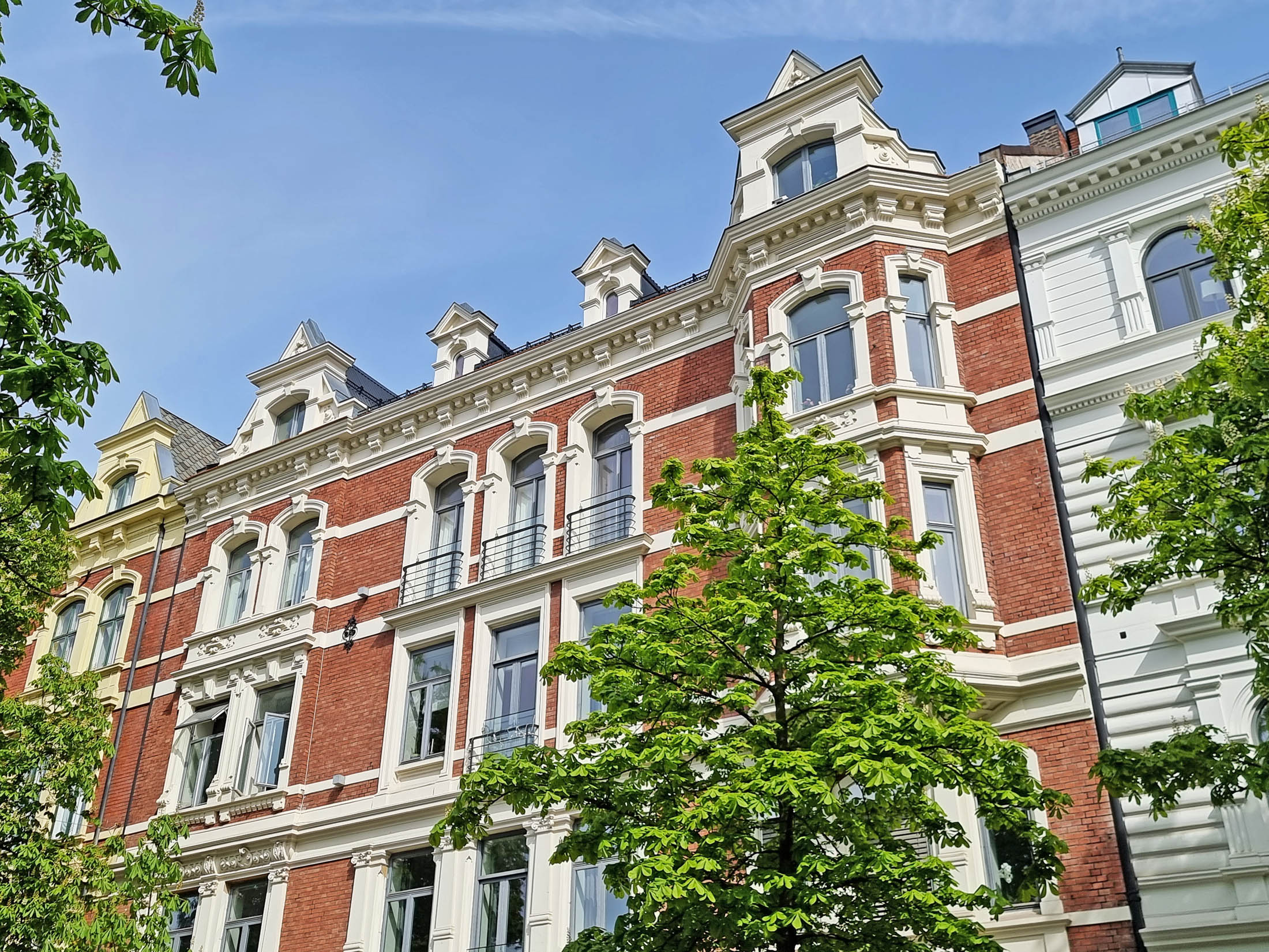 Bilder oben: die aus drei Gebäuden bestehenden Victoria Terrassen wurden Ende des 19. Jahrhunderts als noble Appartementanlage erbaut.