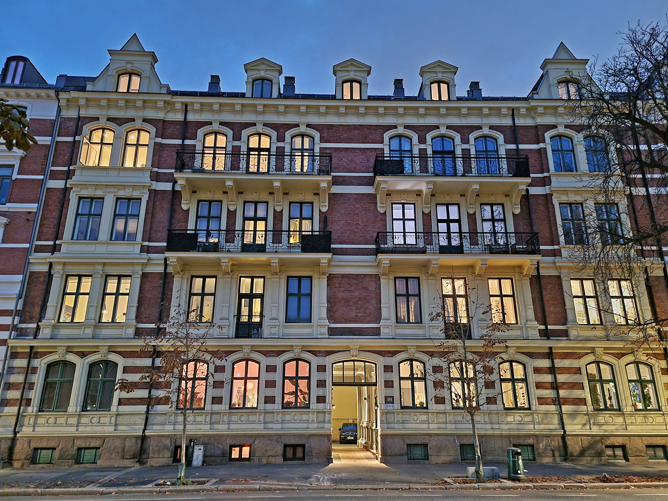 Ursprünglich wurden die palastähnlichen, mit Pilastern, Erkern, Turm und Kuppeln ausgestatteten Bauten Ende des 19. Jahrhunderts (1884 – 1890) im Stadtteil Vika von Architekt Henrik Thrap-Meyer als Appartementkomplex errichtet. Die aus drei Baukörpern bestehende Anlage auf einem gemeinsamen Sockelgeschoss war begüterten Bürgern der Stadt als Wohndomizil vorbehalten. Auch der norwegische Dramatiker Henrik Ibsen wohnte einige Jahre (1891-95) in einem der Gebäude, wie man einer Infotafel an der Fassade entnehmen kann.
