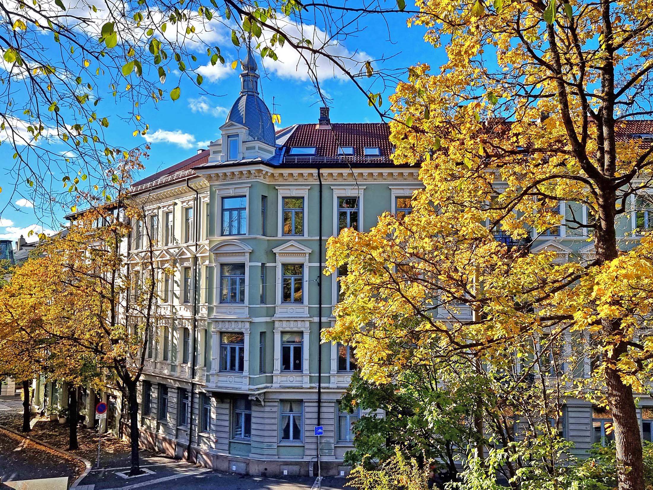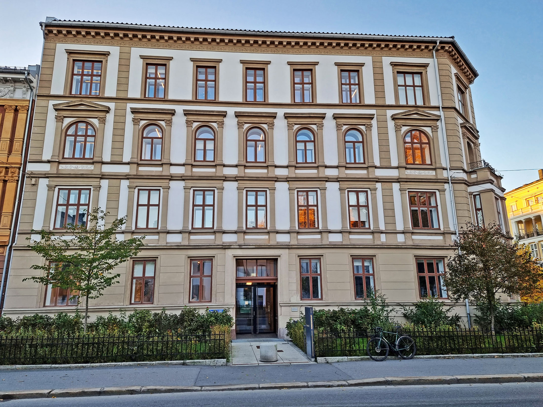 Bild oben: im Stil der Neorenaissance gestaltetes Gebäude am Parkveien; an dieser noblen Straße, die an den Schlosspark angrenzt, befinden sich auch viele Botschaftsgebäude.