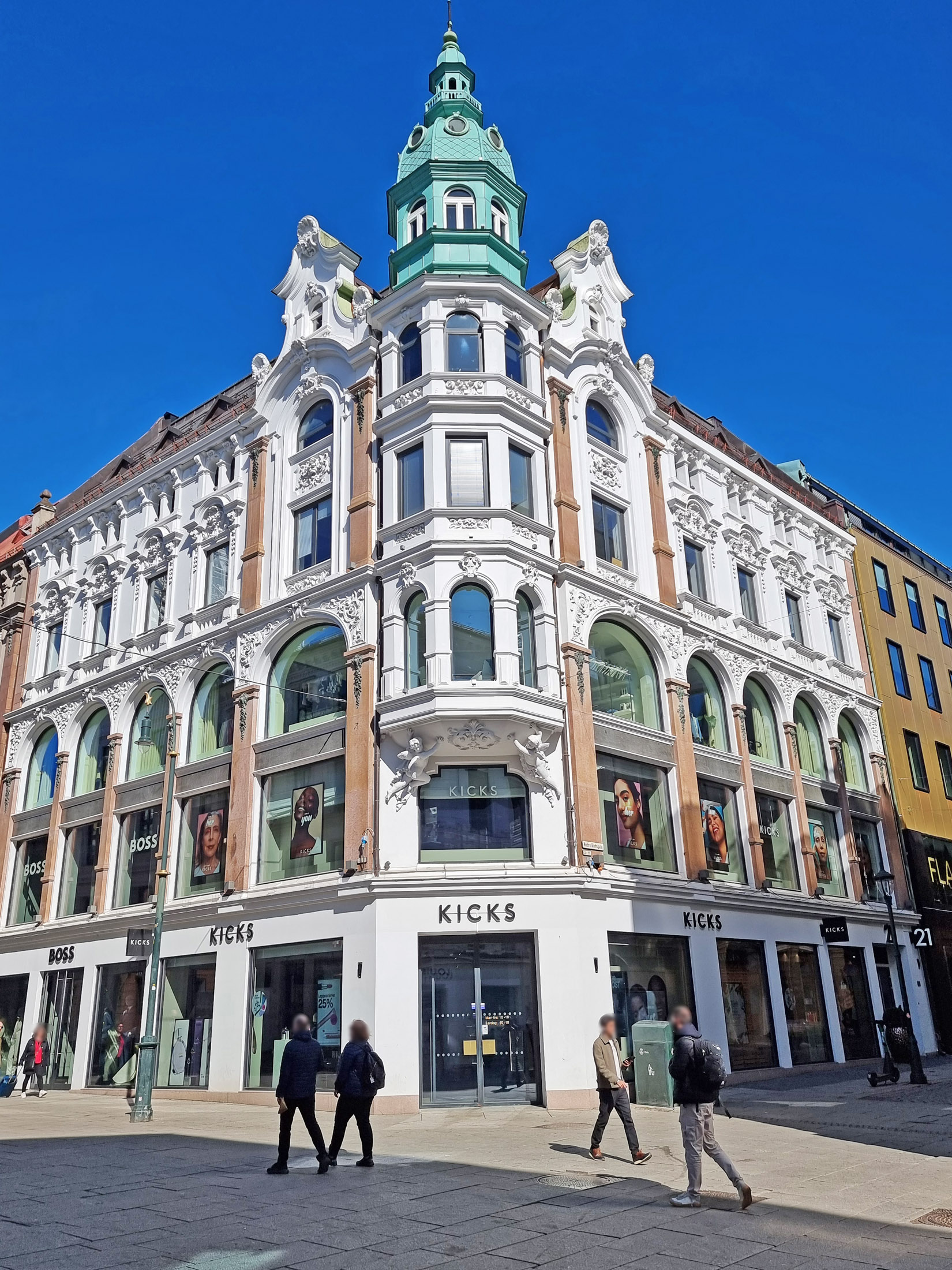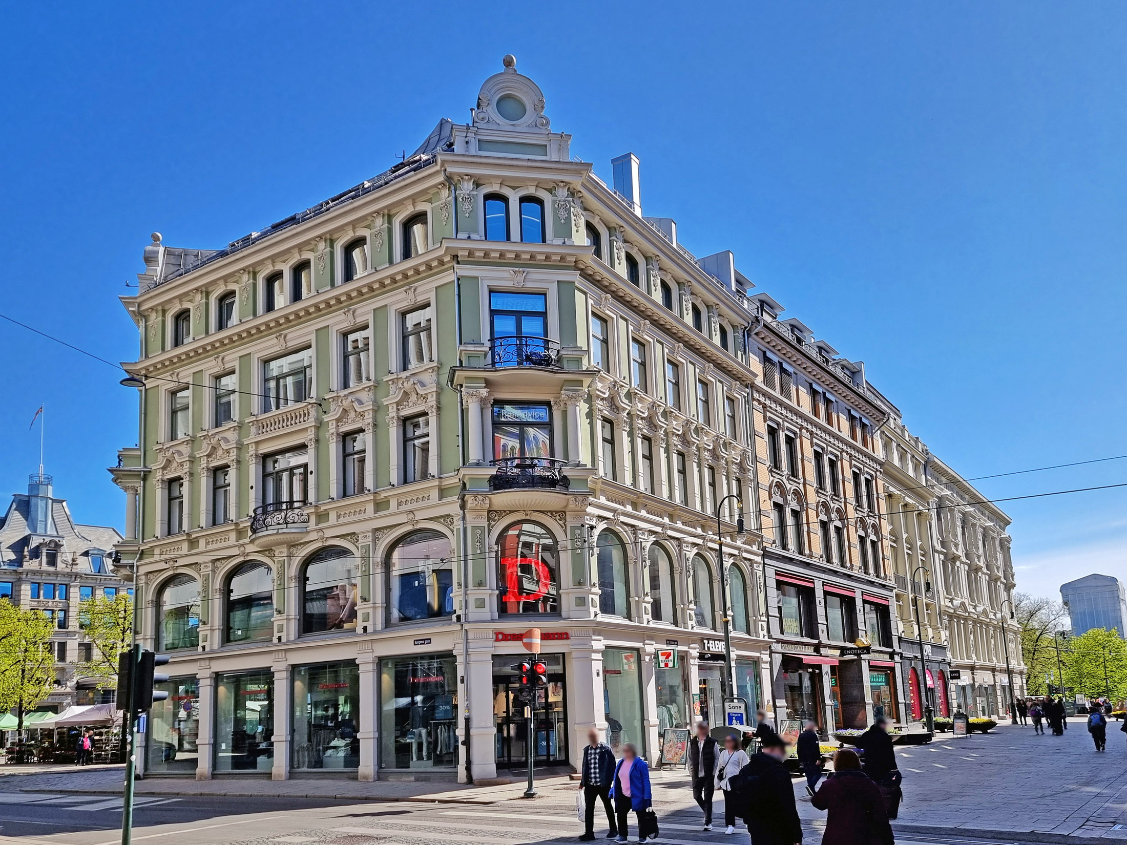 Das Gebäude an der Kongens gate eröffnete als erstes Kaufhaus des Unternehmens im Jahr 1874, gebaut hatte das Haus der Architekt Paul Due. Nach einem Brand mit Totalverlust im Jahr 1929 wurde das heutige fünfstöckige Gebäude vom Architekten Ole Sverre neu gebaut und 1930 in Betrieb genommen. Bei seinem Entwurf lehnte sich Sverre an die Konzeption anderer großer Kaufhäuser dieser Zeit an, etwa an die Galeries Lafayette in Paris: die Verkaufsetagen verlaufen um ein zentrales offenes Atrium, das oben durch ein Glasdach abgeschlossen wird. Seit 1990 erlebte das Kaufhaus mehrere Besitzerwechsel durch verschiedene Investoren; 2021 wurde es umfassend renoviert.