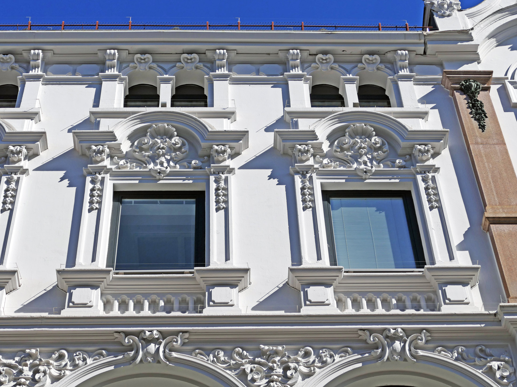 Bild oben: in 2005 wurde das Gebäude umfassend renoviert, saniert und auch umgebaut. So kam anstelle der Dachterrasse nun ein Wintergarten-ähnlicher Anbau.