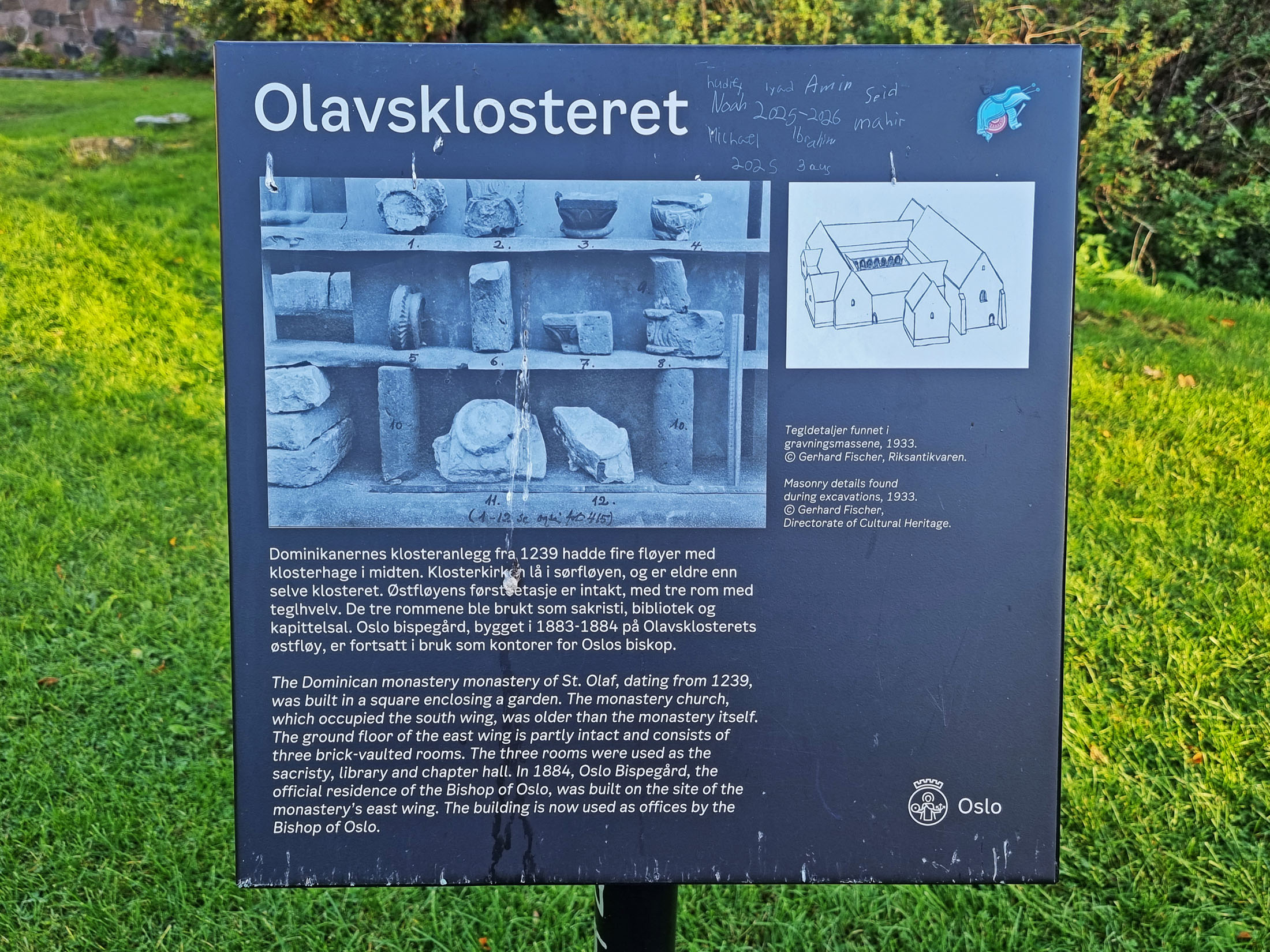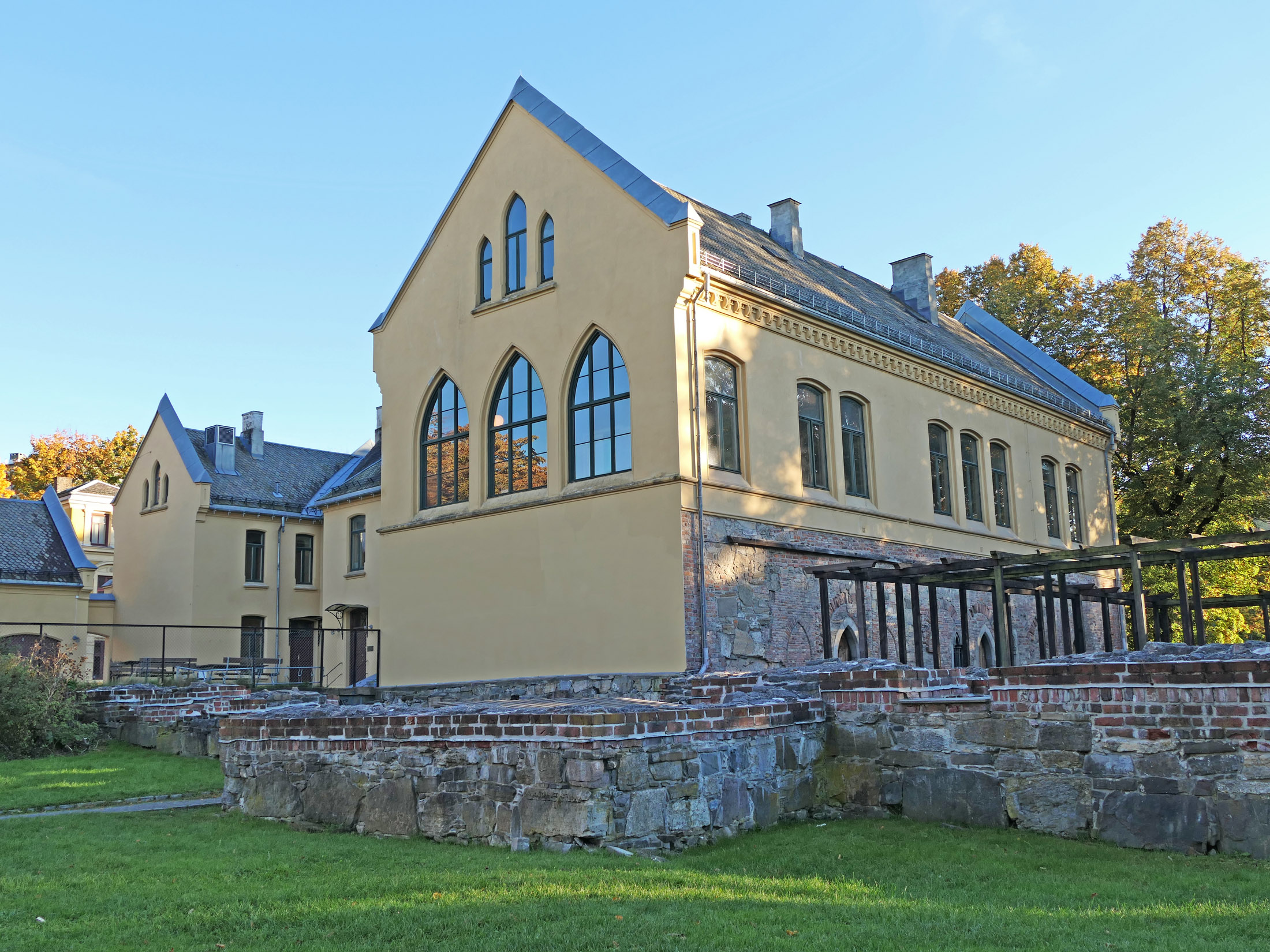In Nachbarschaft zu den Ruinen der St. Hallvards-Kathedrale befand sich das Olavskloster aus dem 13. Jahrhundert. Es wurde 1239 von den Dominikanern gegründet. Die sich bereits hier befindende Olavskirche wurde dabei in die Klosteranlage einbezogen. Im Zuge der Reformation wurde das Klostergebäude dann teilweise abgerissen; der Ostflügel blieb aber erhalten und wurde als Bischofssitz genutzt. In der Folgezeit wurde dieser Gebäudeteil mehrfach umgebaut und erweitert.
