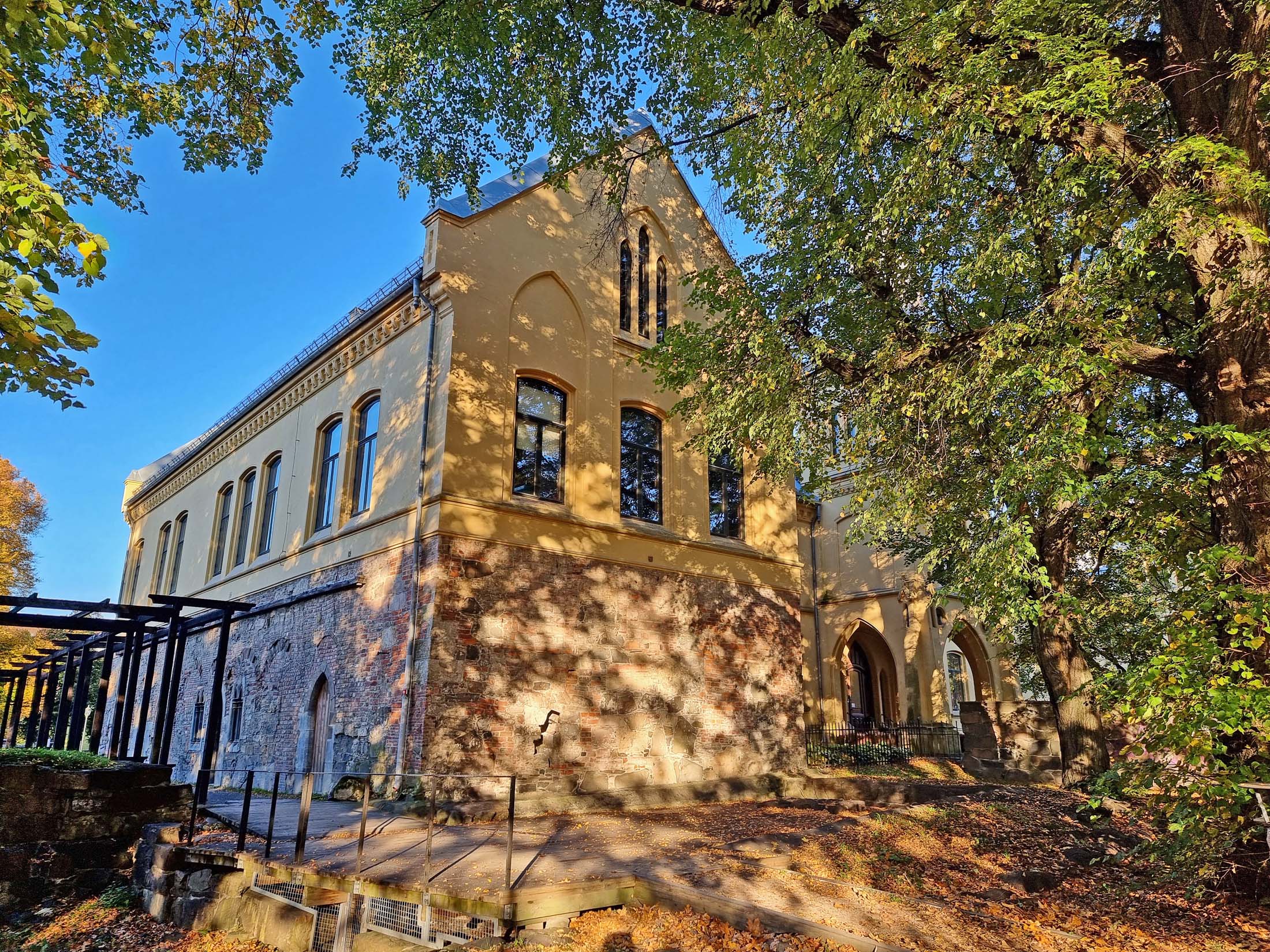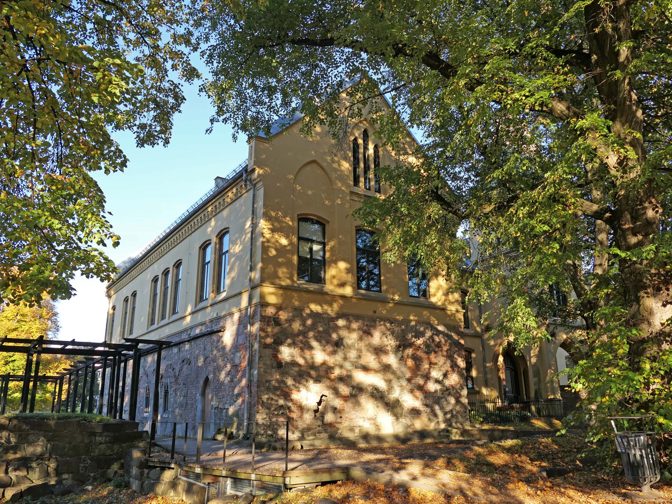 Bilder oben: der moderne Anbau aus dem Jahr 1974 stamm vom Architekturbüro Frithjof Stoud Platou.