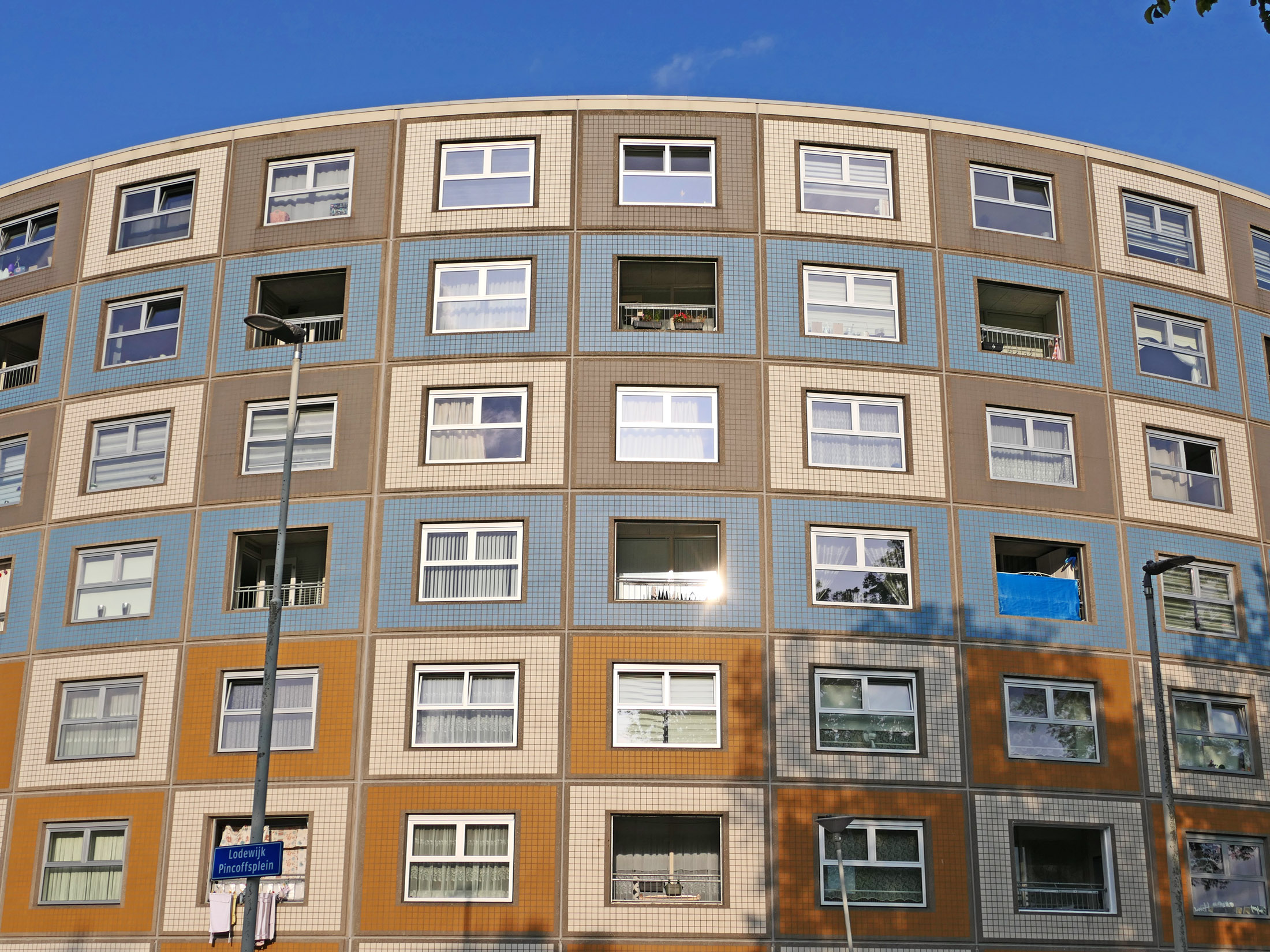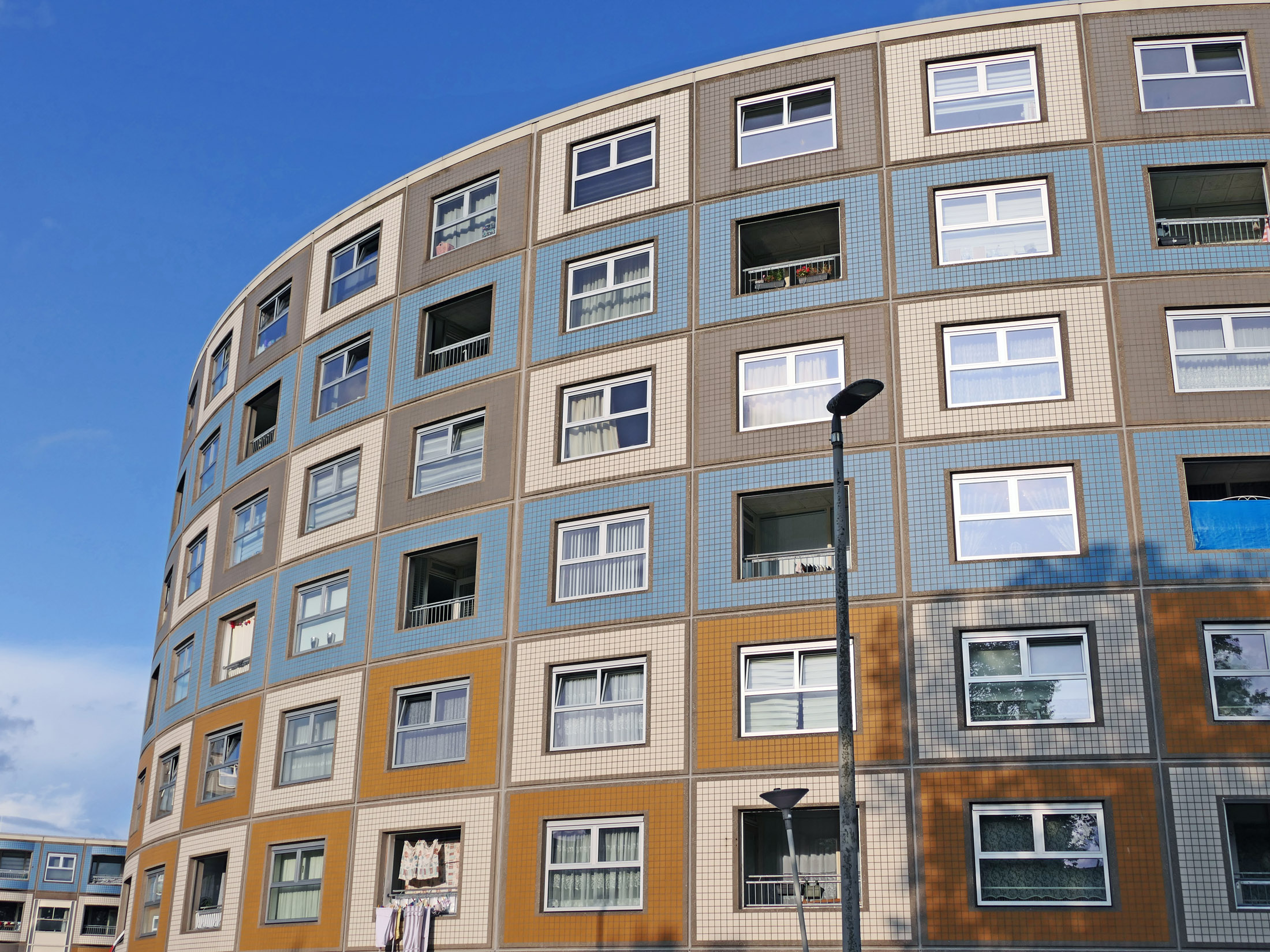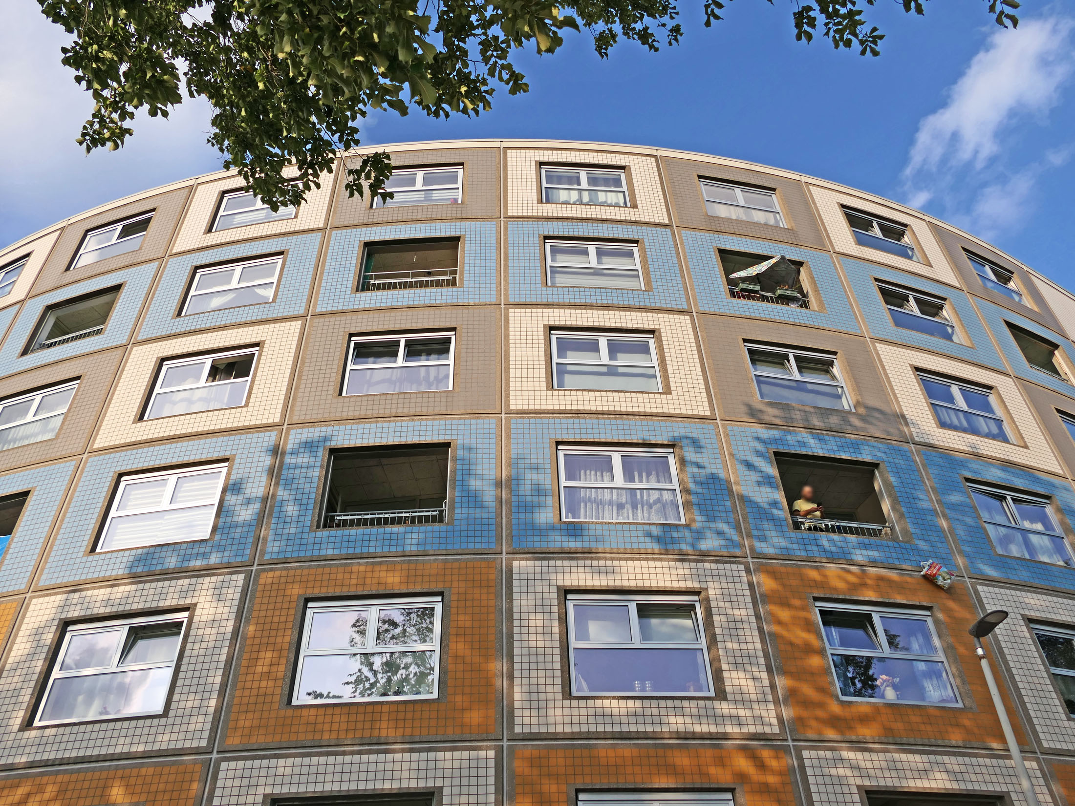 Bilder oben: eines der „runden Ecken“ der fast einen Kilometer langen „Wohnschlange“-