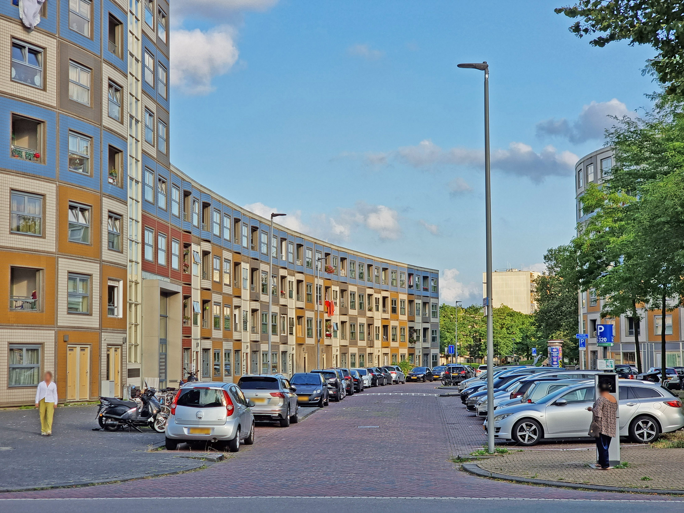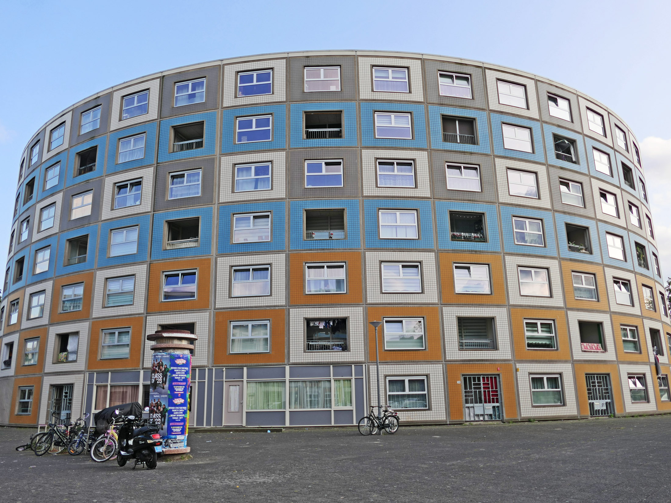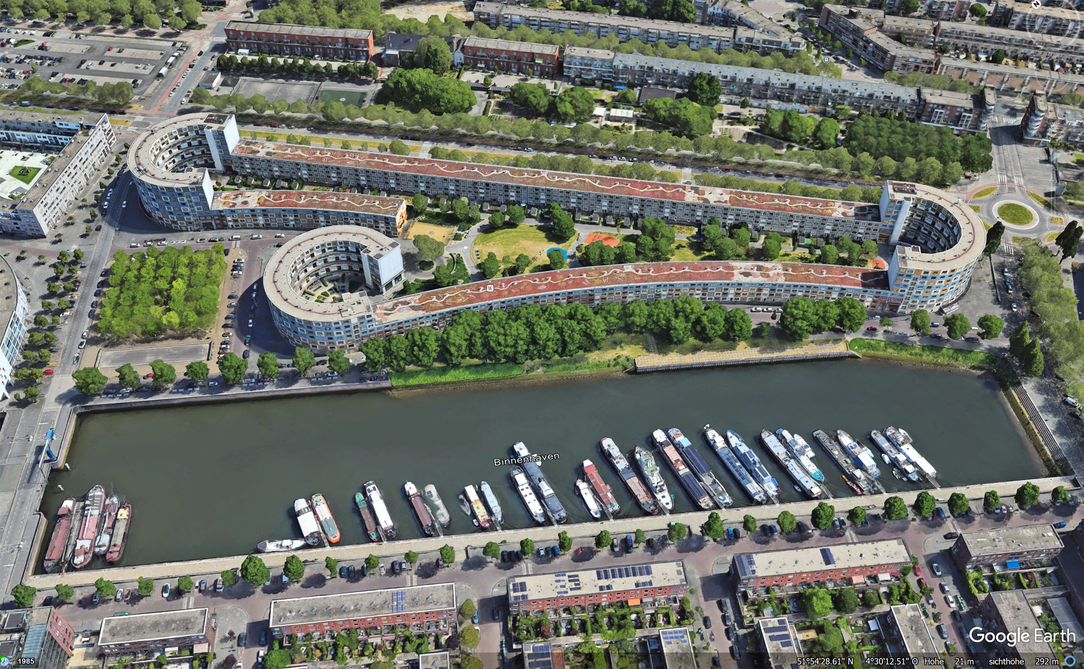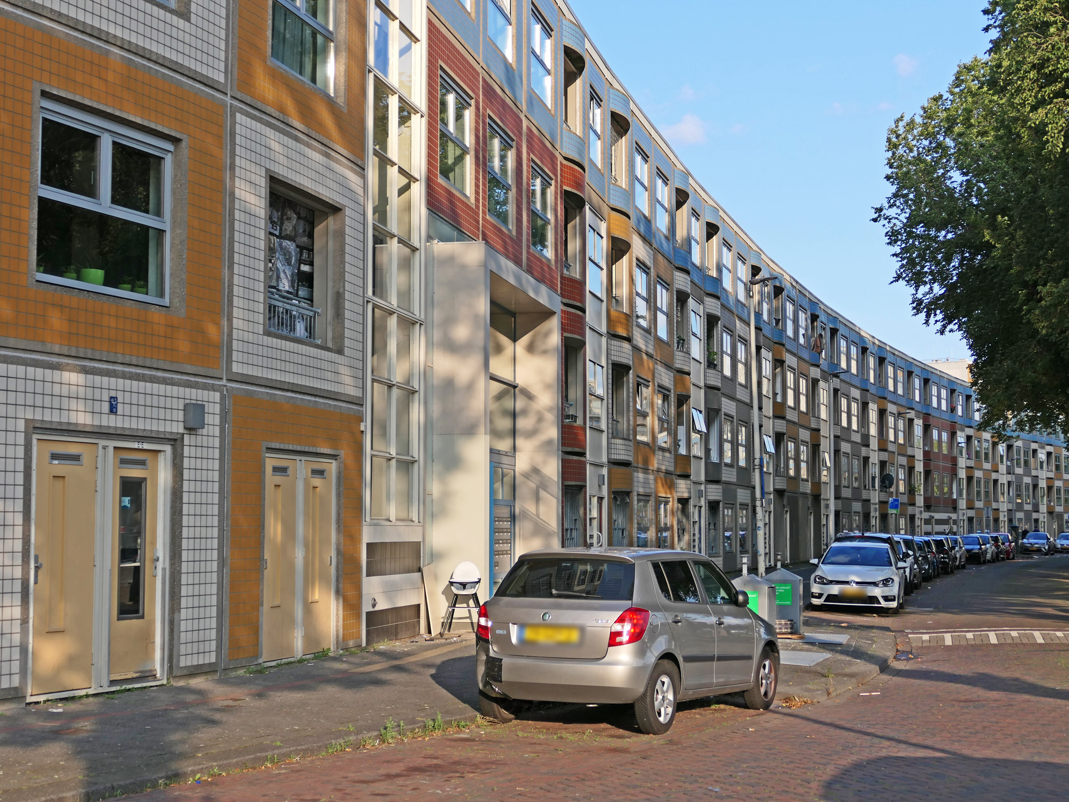 In der riesigen „Wohnschlange“, die von der Kommunalen Wohnungsgesellschaft Rotterdam beauftragt worden war, entstanden 549 unterschiedlich große Wohnungen (manchmal ist auch von 605 Wohneinheiten die Rede): von Zweizimmerwohnungen bis zu 5-Zimmer-Maisonette-Appartements. Der mittlere Teil der riesigen Wohnzeile ist vierstöckig, die „runden Ecken“ sind 8-stöckig bzw. 6 Stockwerke hoch. Das Gebäude umfasst einen großen begrünten Innenhof mit Spielplätzen und einem Ballspielfeld. Die Gebäudefassade besteht aus vorgefertigten Betonelementen, welche Dämmung und Fenster bereits enthielten. Die Außenseite besteht dabei aus farbig glasierten Kacheln, wobei die Farbgebung und Anordnung nach dem Architekten an gestapelte See-Container erinnern sollte. Rasterförmig wechseln Fenster mit Loggien ab.
