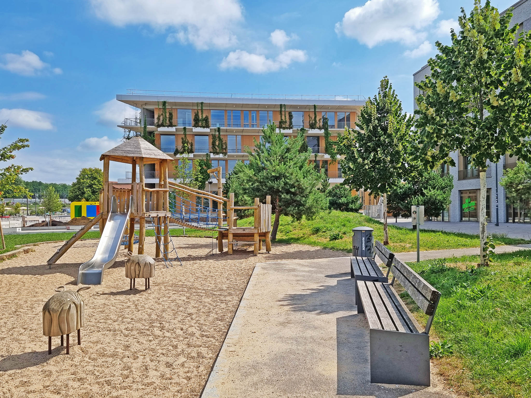 Also besannen sich die Stadtplaner/innen auf eine alternative Nutzung des Areals: inzwischen entsteht hier ein sehr vielseitig genutztes (Wohnen, Bildung, Gewerbe, Sport, Freizeit,…) Stadtquartier. Die städtebaulichen Planungen von 2008 gehen auf ein Gutachten von Pesch Partner pp a|s architekten stadtplaner (Stuttgart) zurück. Das Konzept setzte hohe Maßstäbe in punkto Klimaschutz, Naturschutz, Energieeffizienz und Wohnqualität und schloss auch Bürgerbeteiligungsverfahren bei der Entwicklung mit ein.