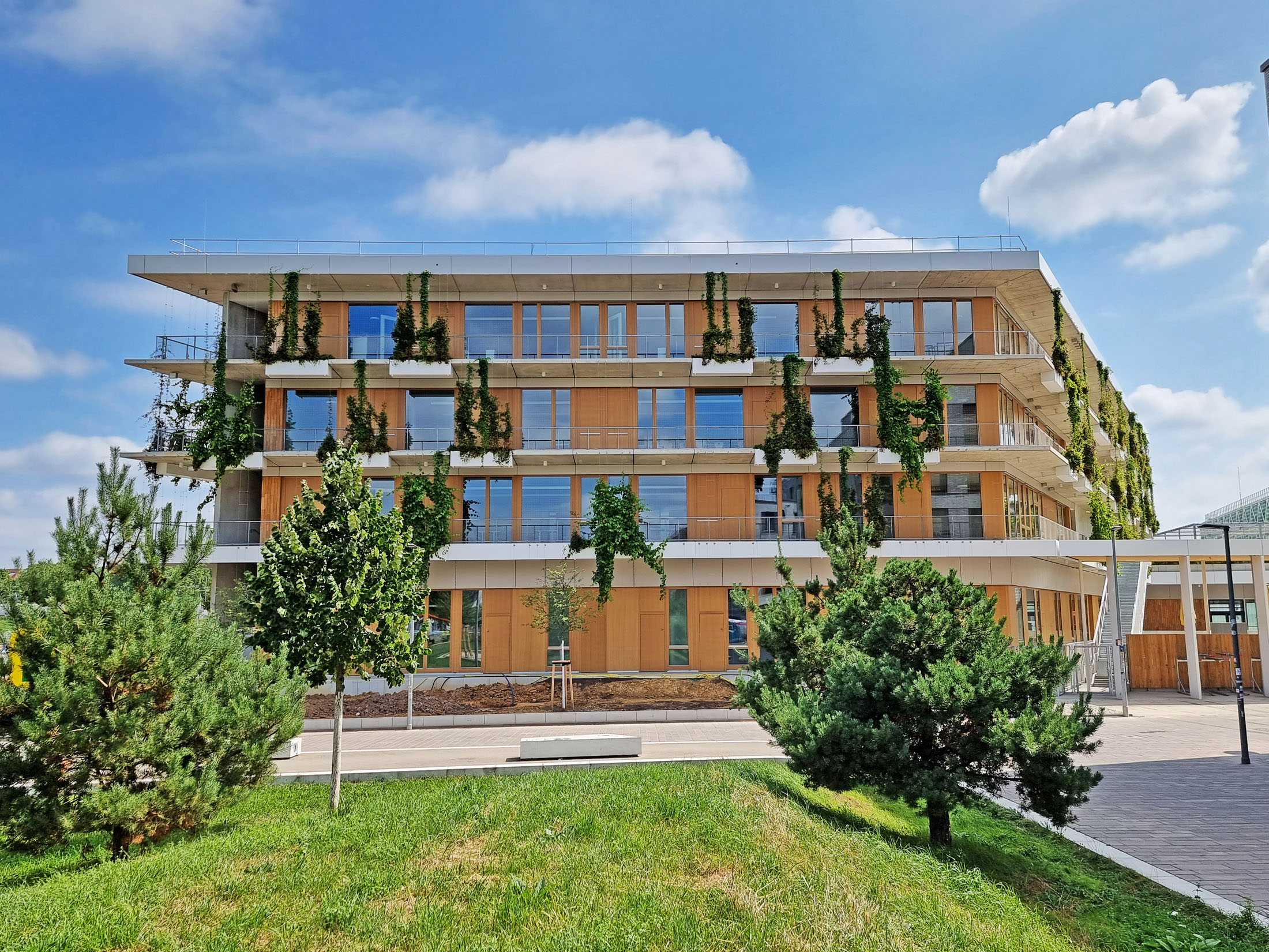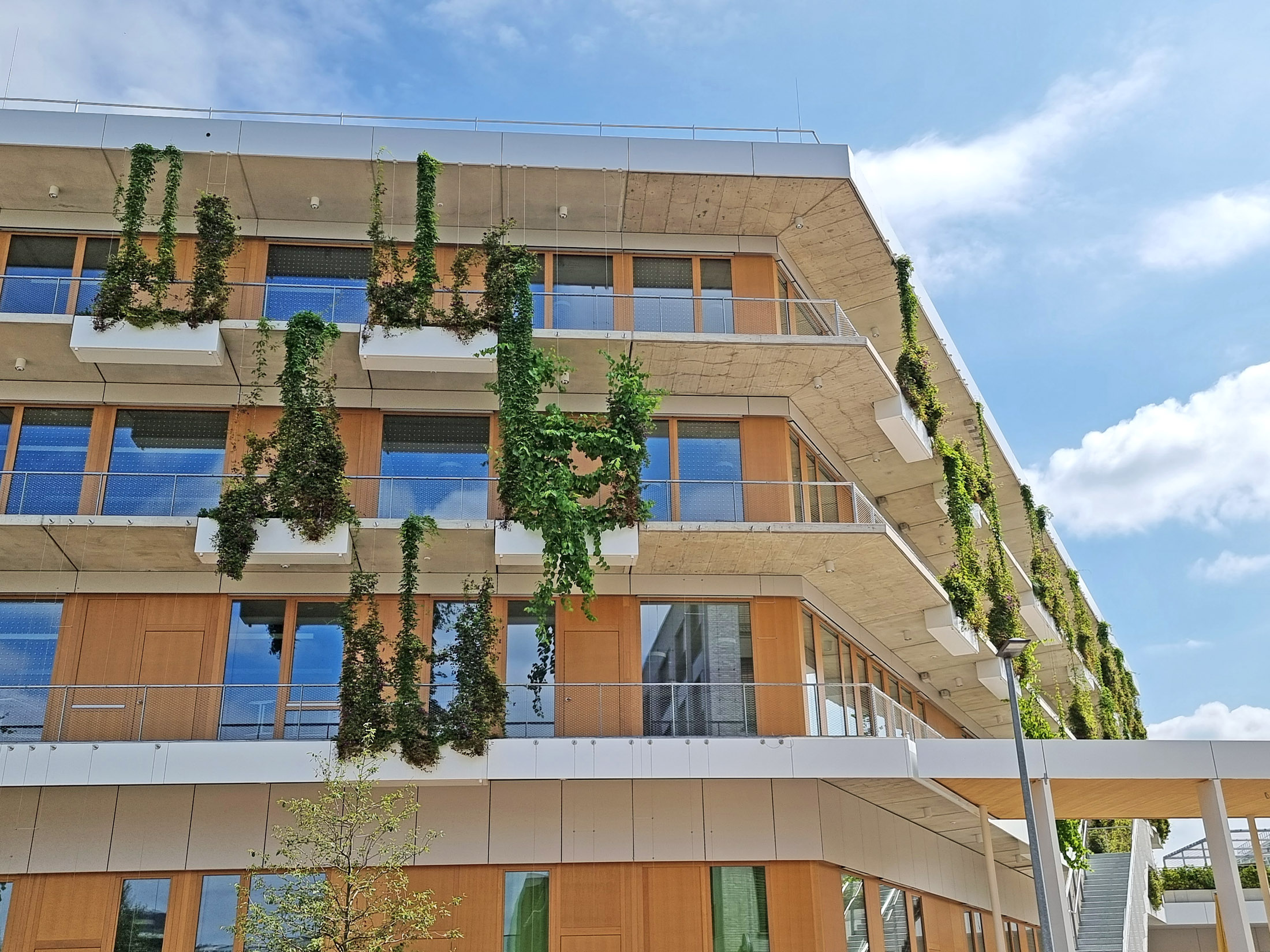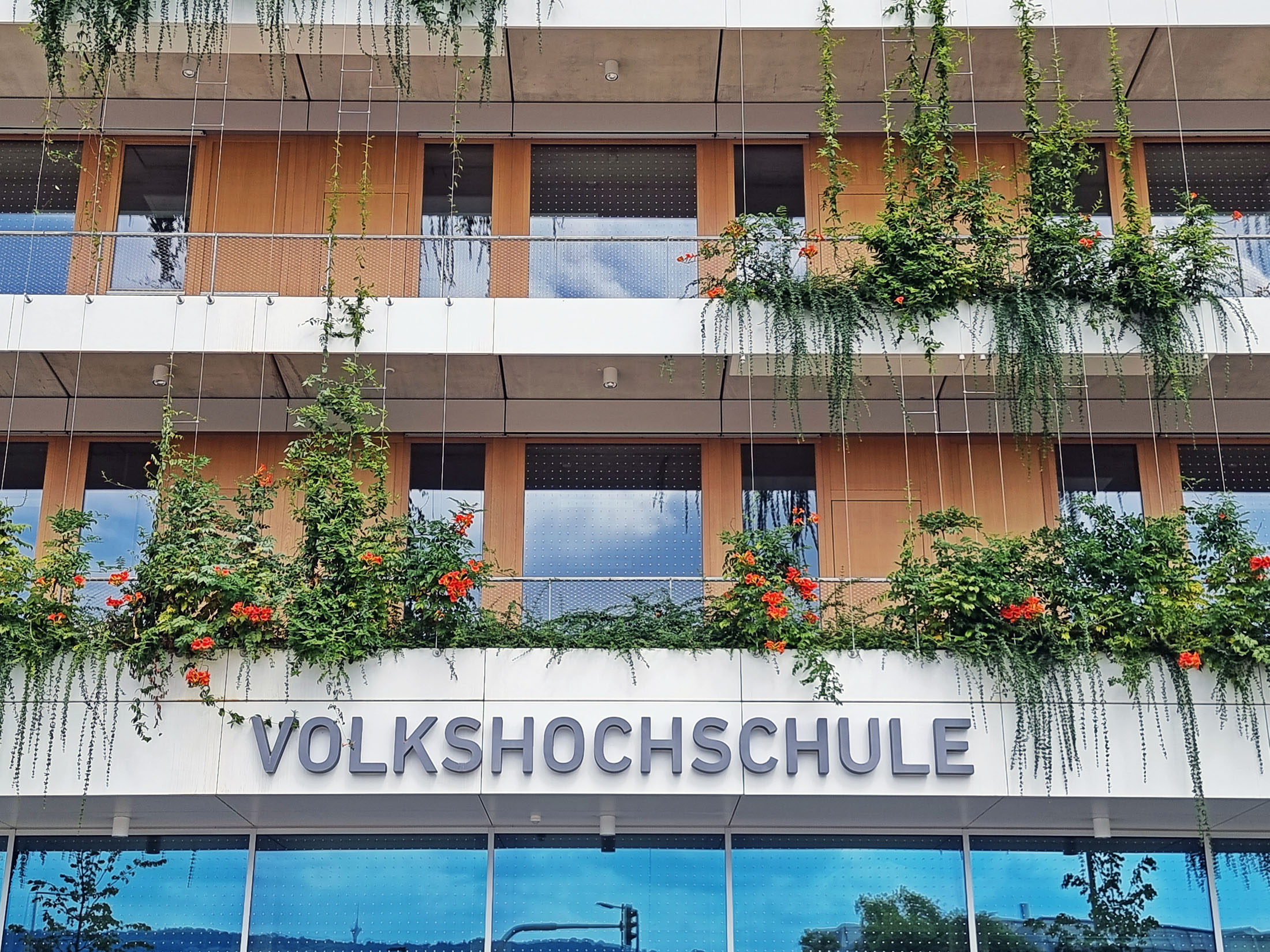 Bilder oben: Fassadenbegrünung am neuen Bildungshaus.