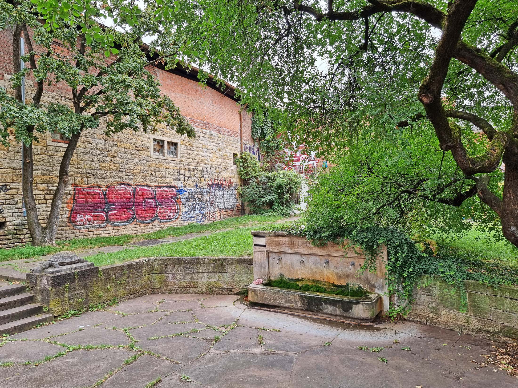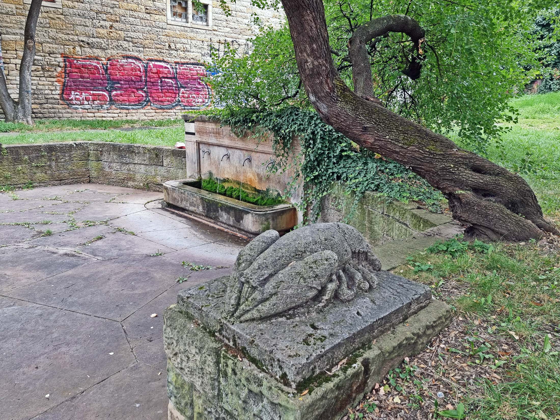 Bild oben: der namensgebende Veielbrunnen befindet sich ein Stück entfernt neben dem Stuttgarter Straßenbahnen-Museum. Es handelt sich um eine Heilwasserquelle.
