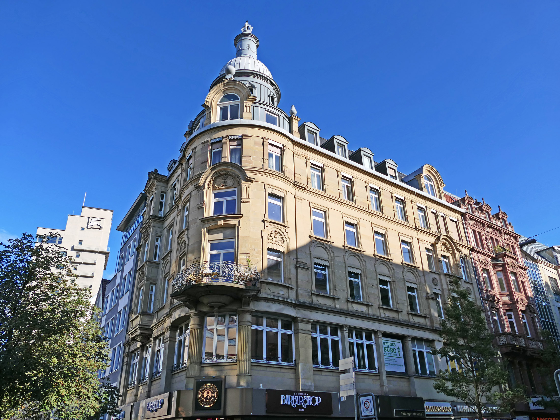Bilder oben: der Carl-Eugen-Bau, in dem die Börse Stuttgart untergebracht ist (Ecke Börsenstraße / Huberstraße).