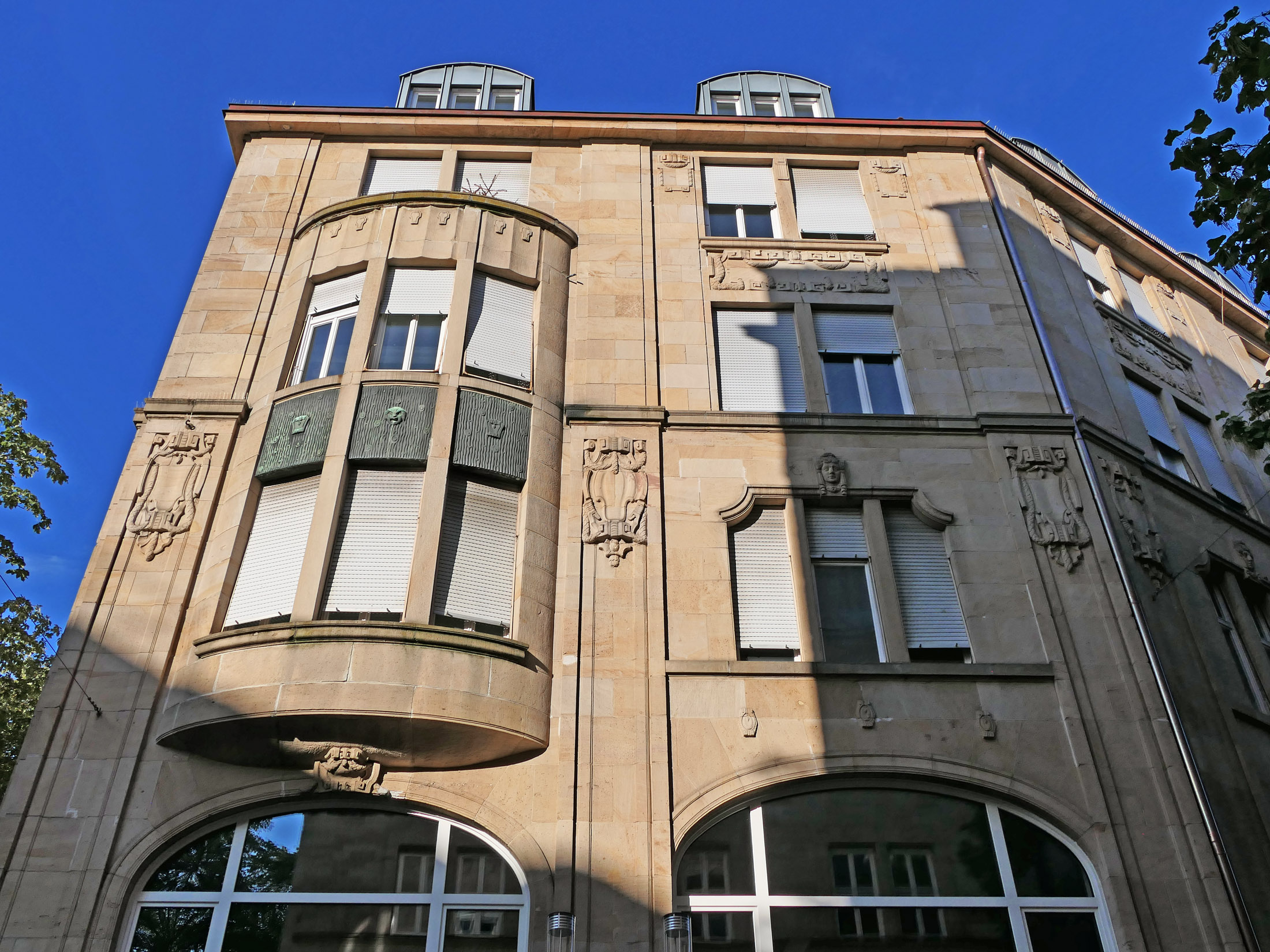 Das dreigeschossige Gebäude wurde von den Regierungsbaumeistern Bulling und Herkommer geplant und gebaut. Die Fassade im Erdgeschoss ist mit Sandstein verkleidet, das Haus trägt ein Walmdach.