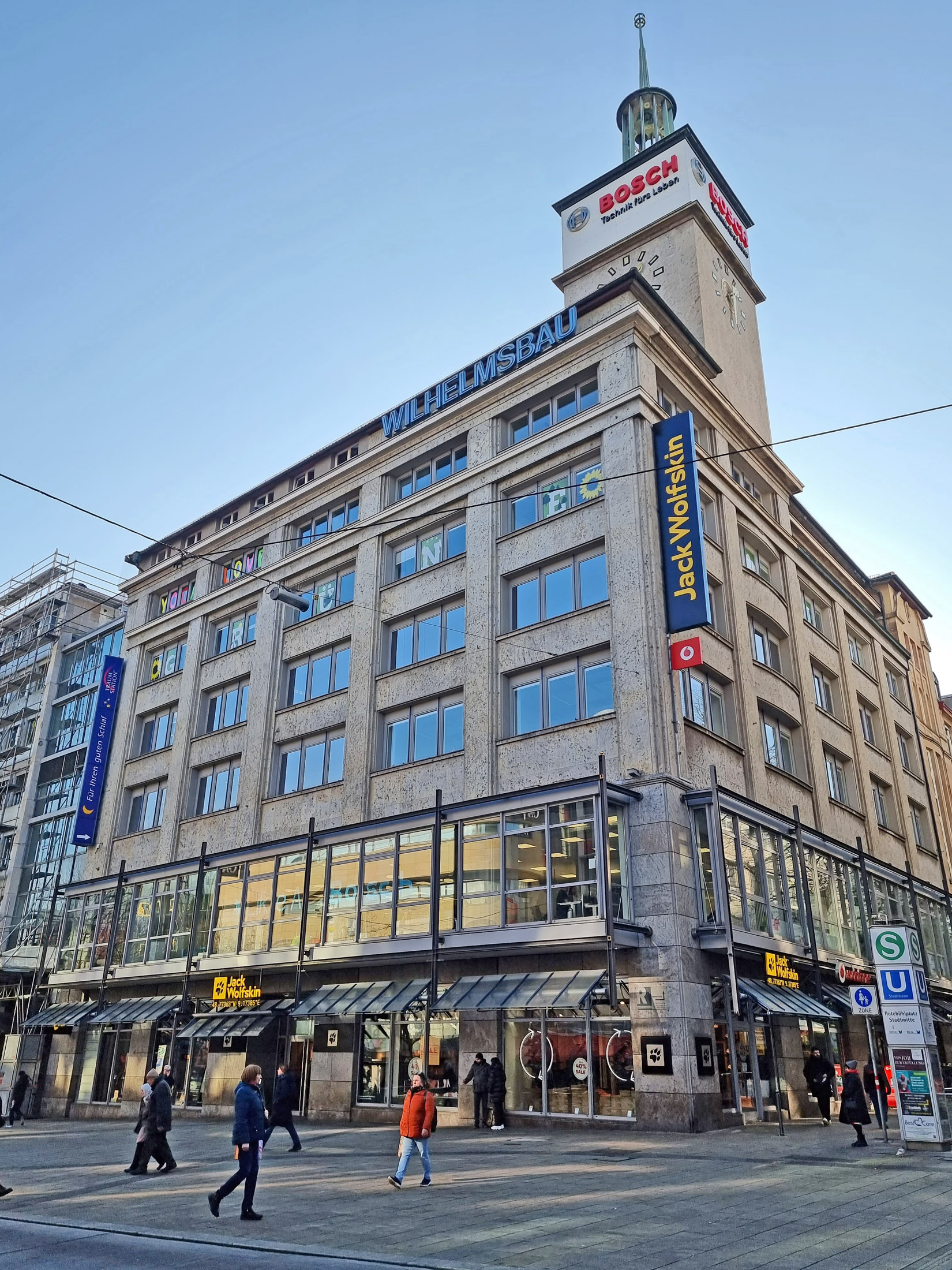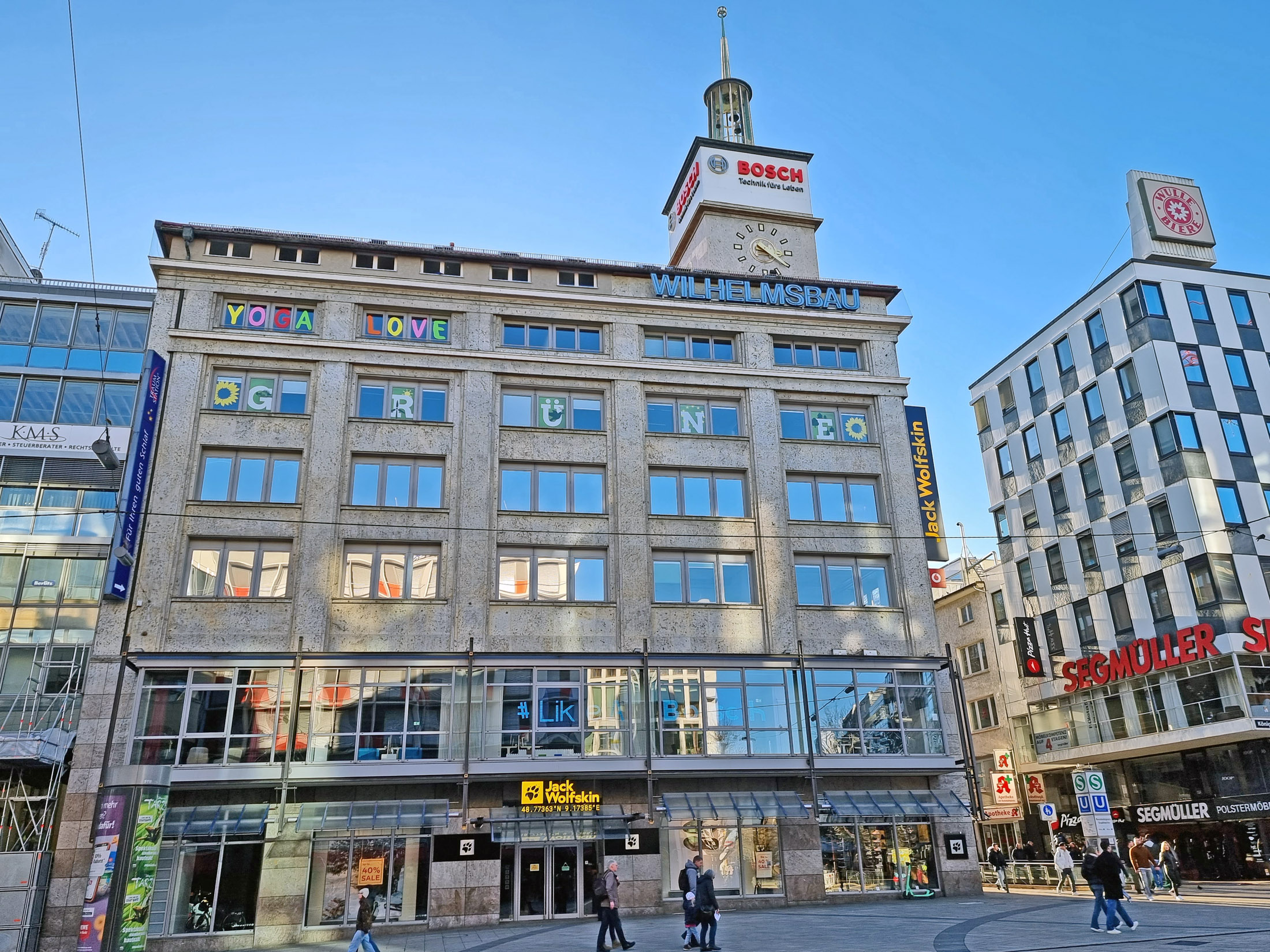 Bilder oben: der Hindenburg-Bau befindet sich am Arnulf-Klett-Platz gegenüber dem Hauptbahnhof.