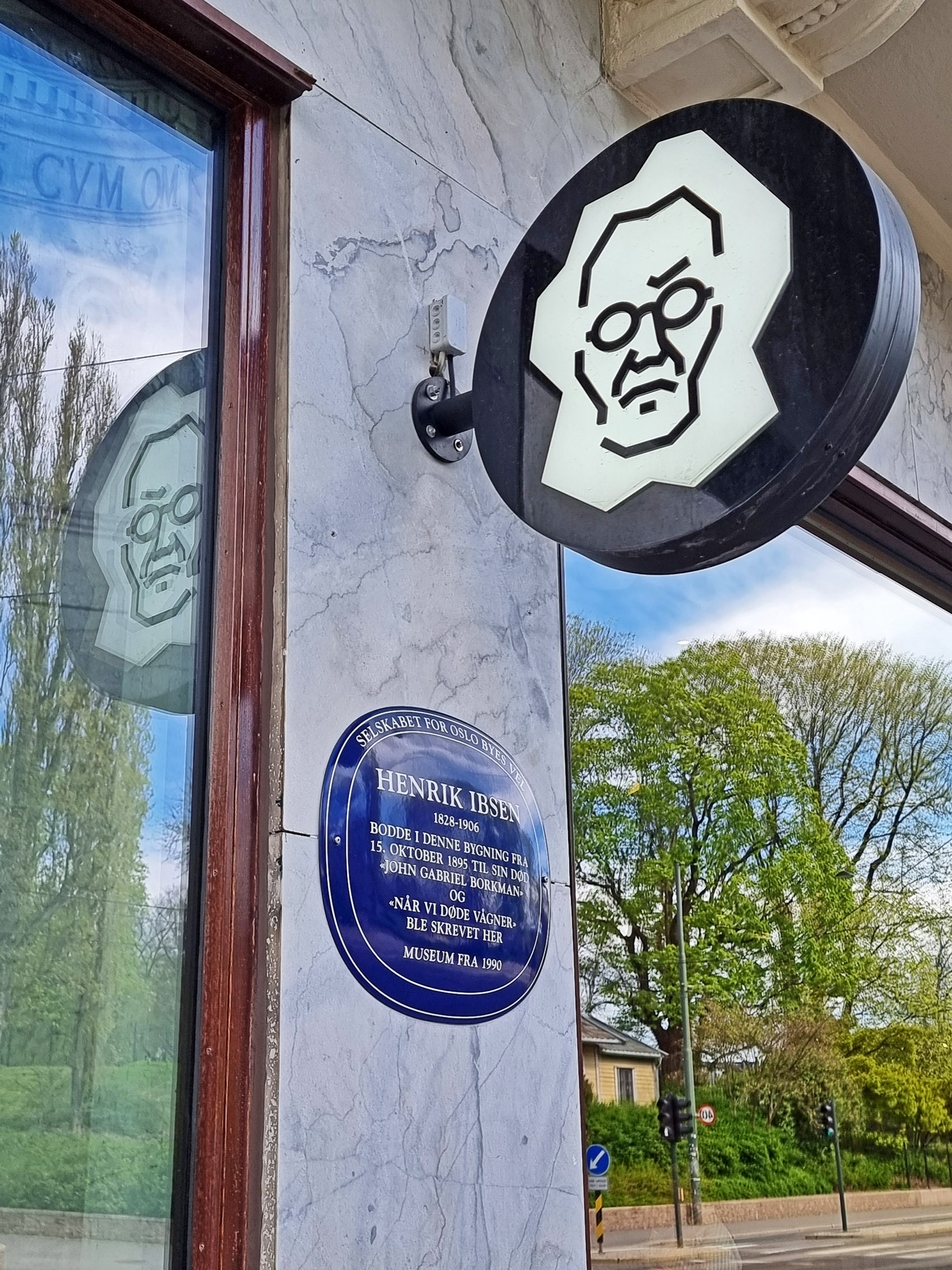 Zum Bild: die Inschrift auf der Info-Plakette lautet (übersetzt mit DeepL): Henrik Ibsen (1828–1906) lebte vom 15. Oktober 1895 bis zu seinem Tod in diesem Gebäude.
